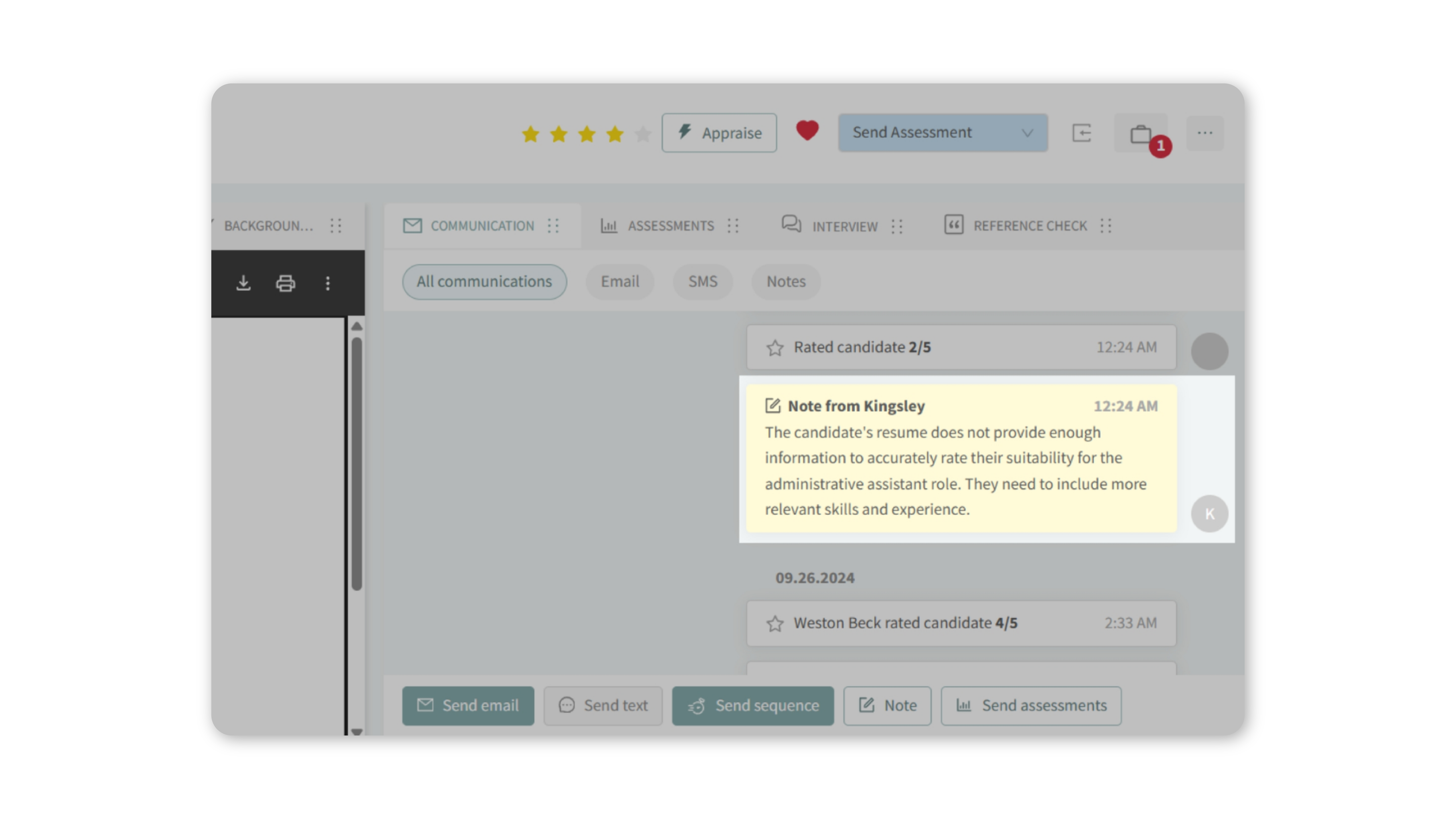 - Encourage recruiters to document their mental checklists for what makes a great candidate; Kingsley can align better when this data is captured.