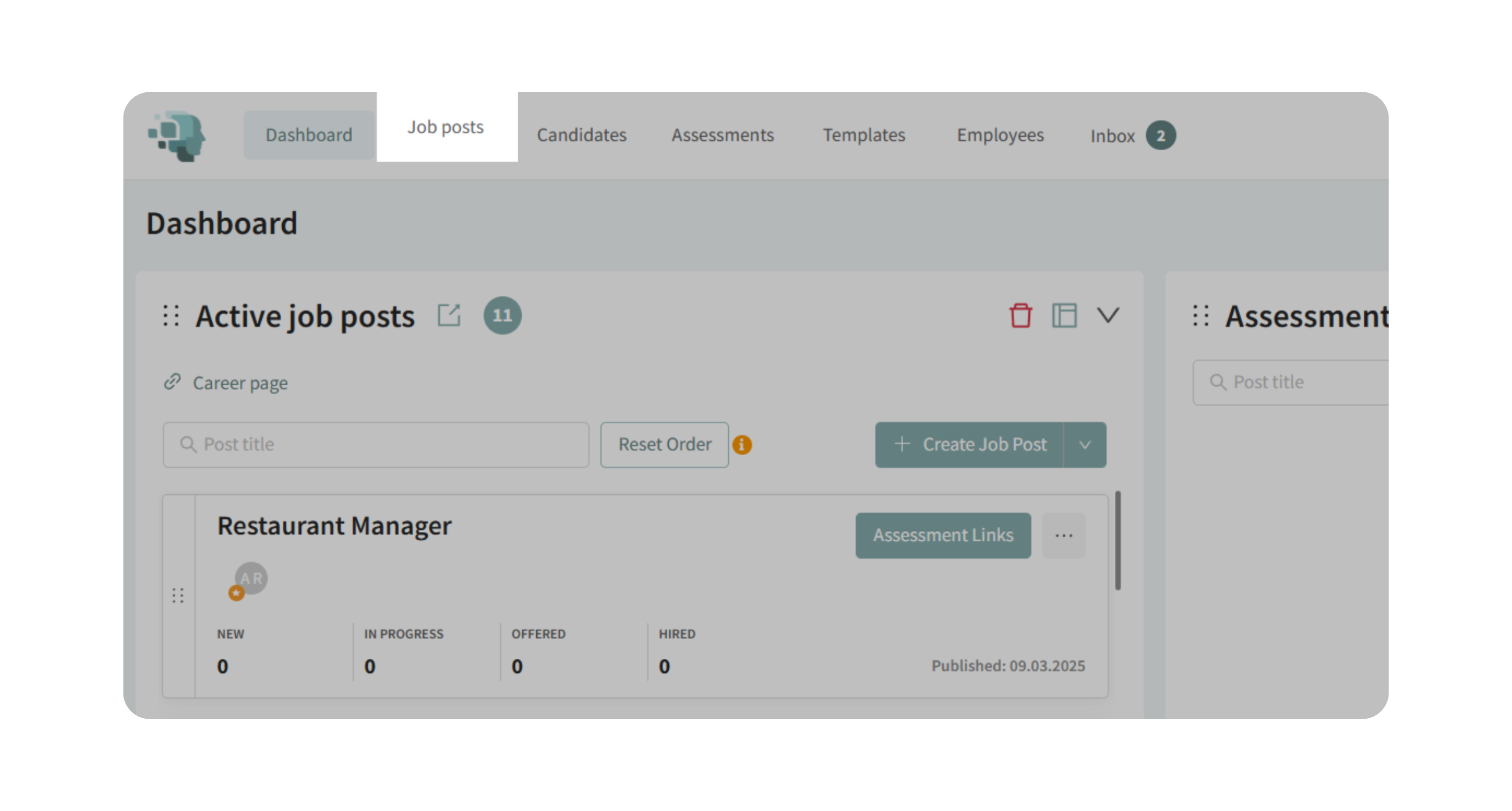 Note: If you don't have a job post yet, follow [this knowledge base article] to create one. You can also upload or request resumes from candidate profiles directly.