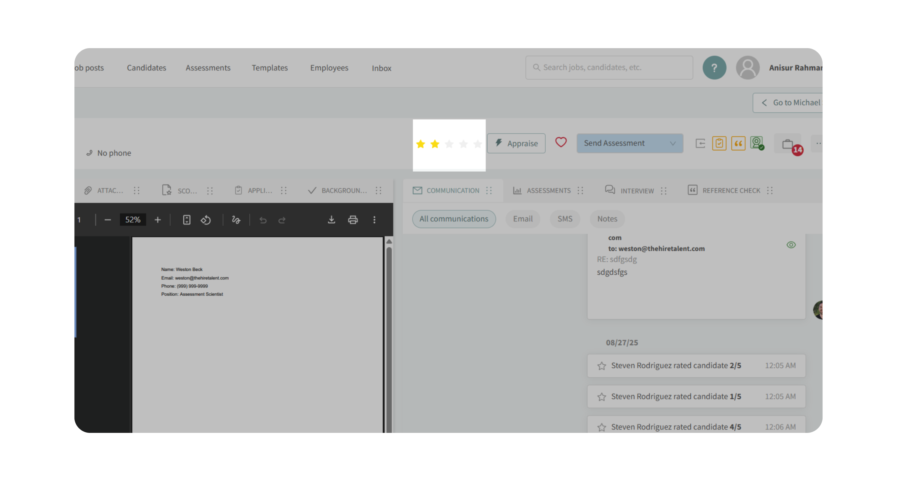 - To re-evaluate, update the Internal Job Description and return to the candidate profile.