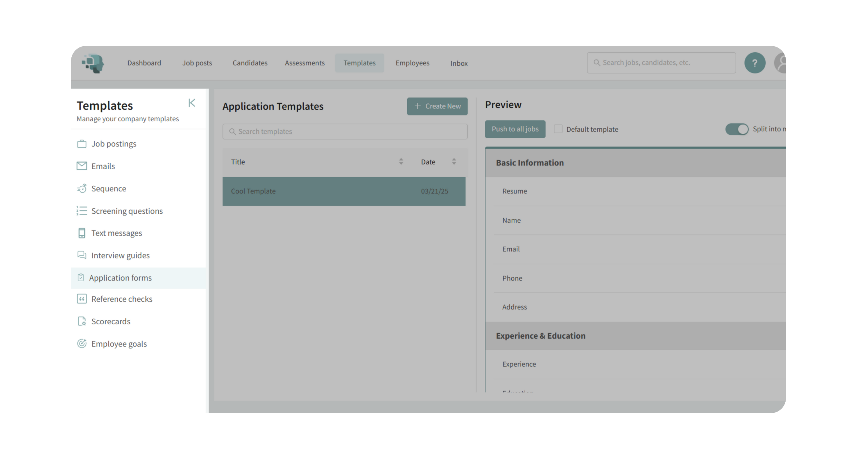 Customize the candidate application experience by controlling what information you collect, how it’s structured, and whether it can be reused across jobs.