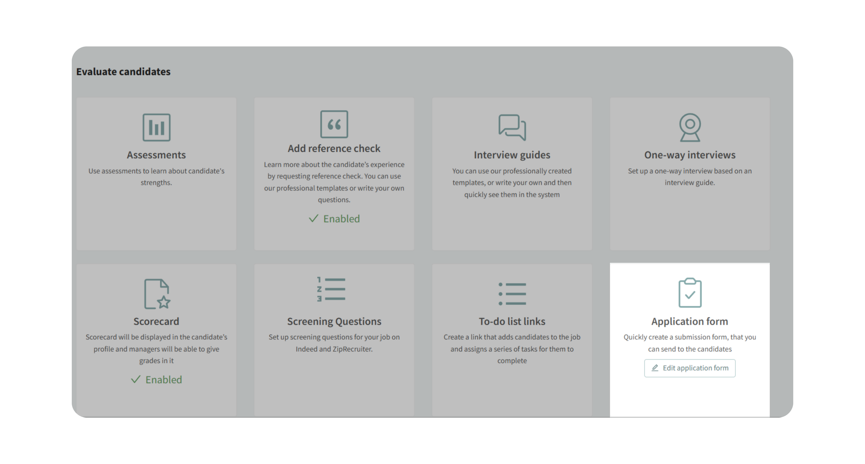 - Scroll to the Evaluate Candidates section and click Application Form.