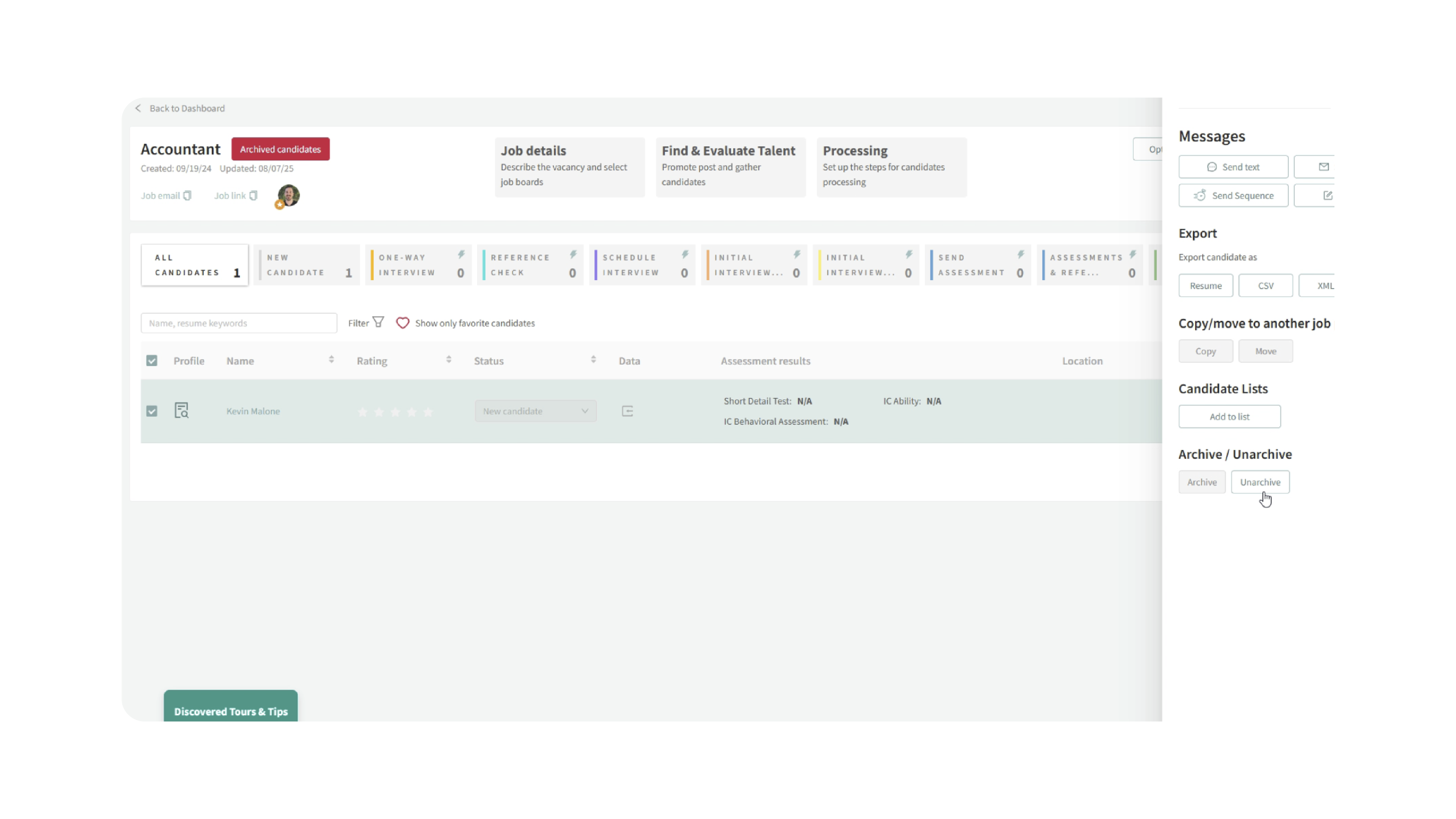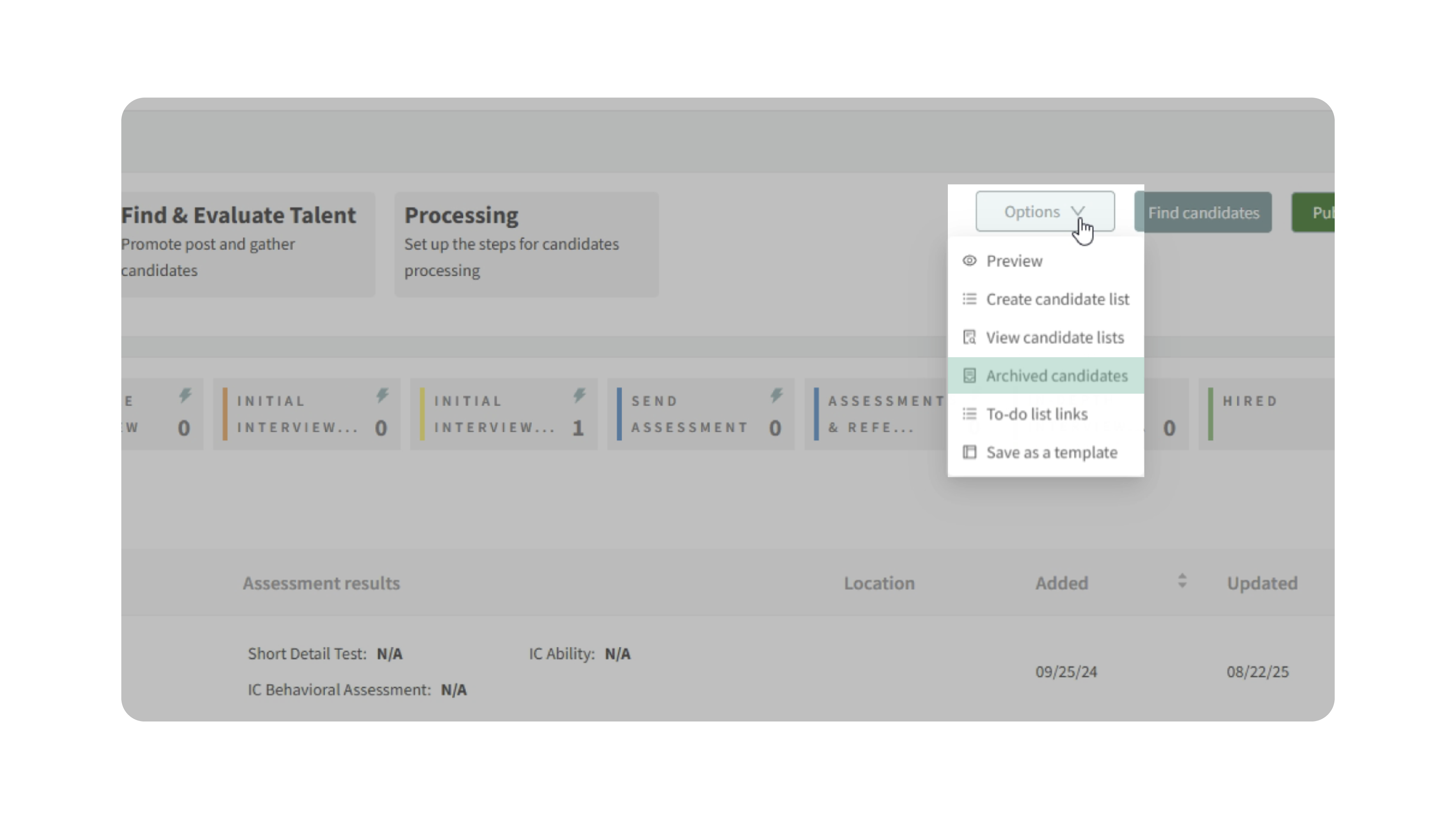 - Maintains pipeline accuracy: Restoring candidates ensures your hiring stages stay clean and accurate.