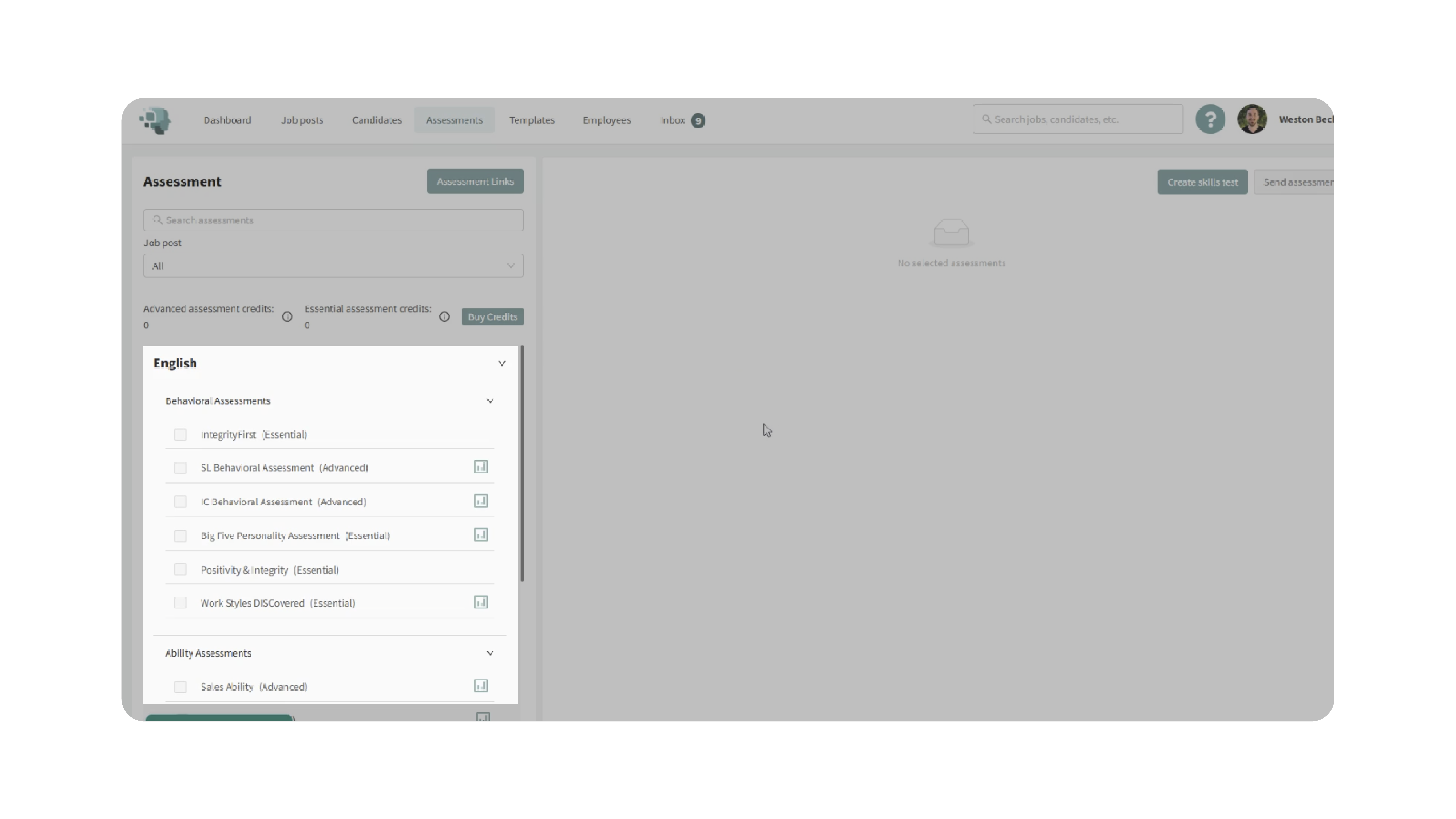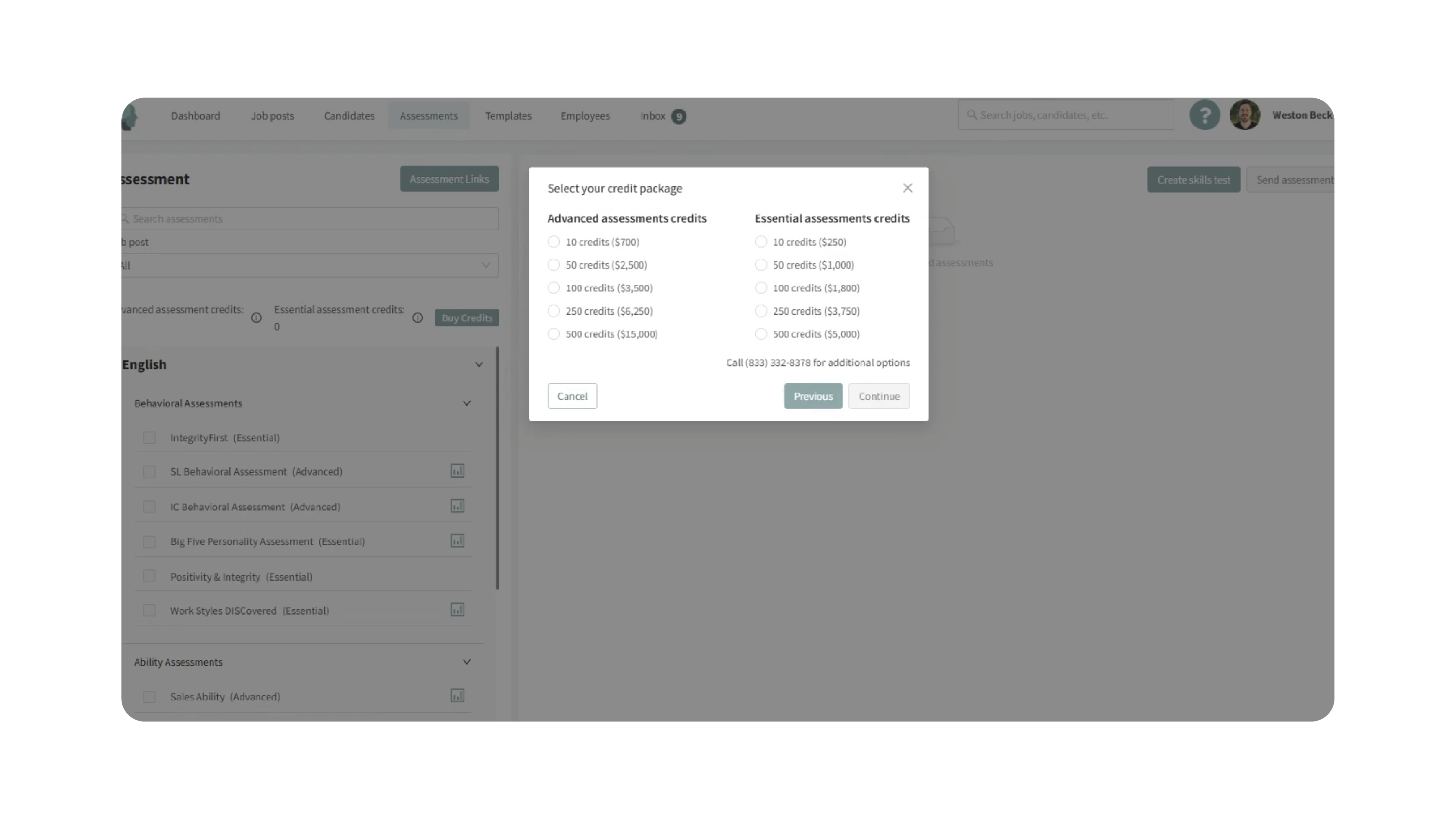 - Select the quantity that aligns with your hiring volume and expected number of assessment completions.