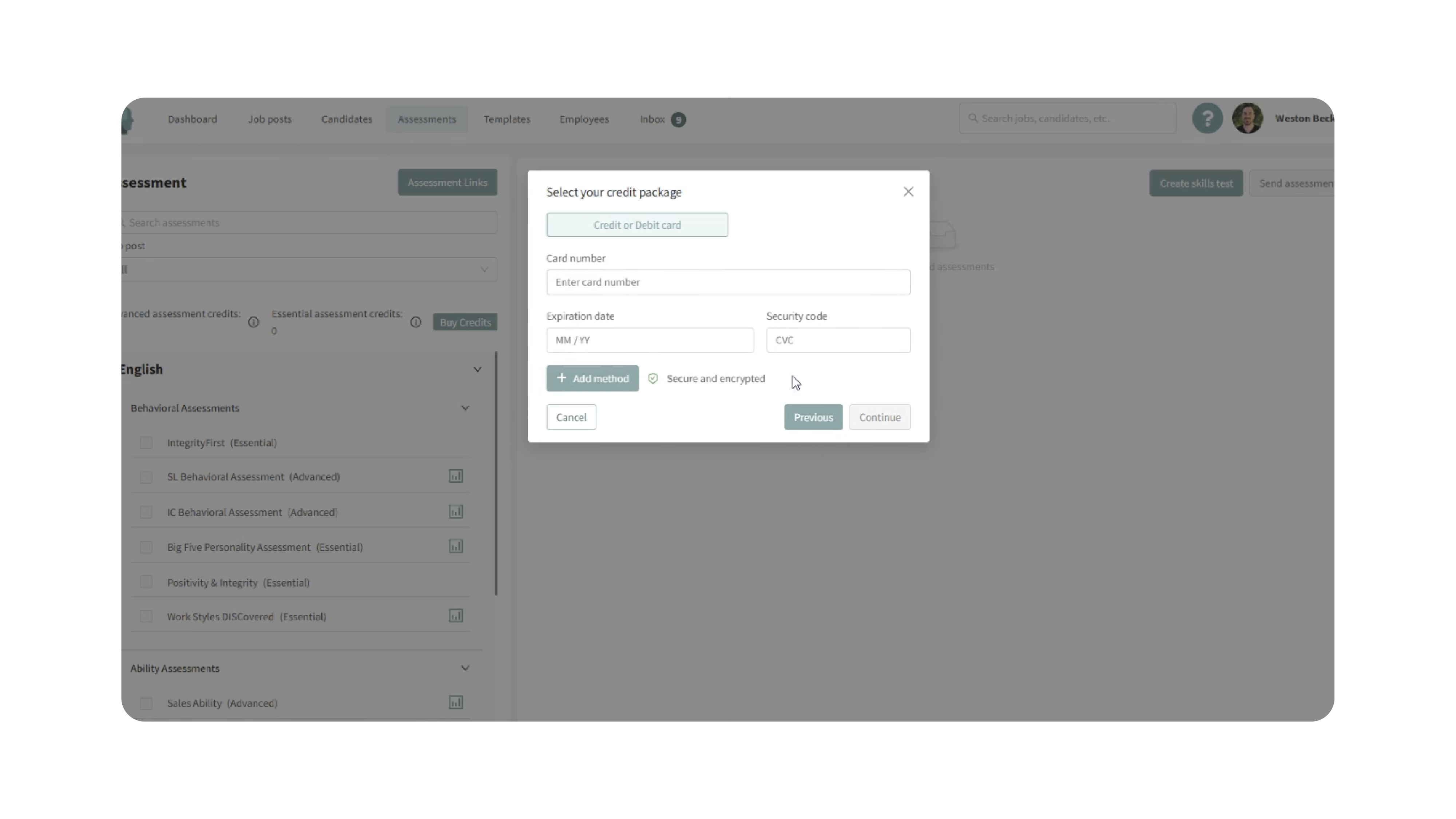 This guide walks you through the process of purchasing assessment credits, selecting the right credit type, and managing payments to ensure you have enough credits to continue evaluating candidates seamlessly.