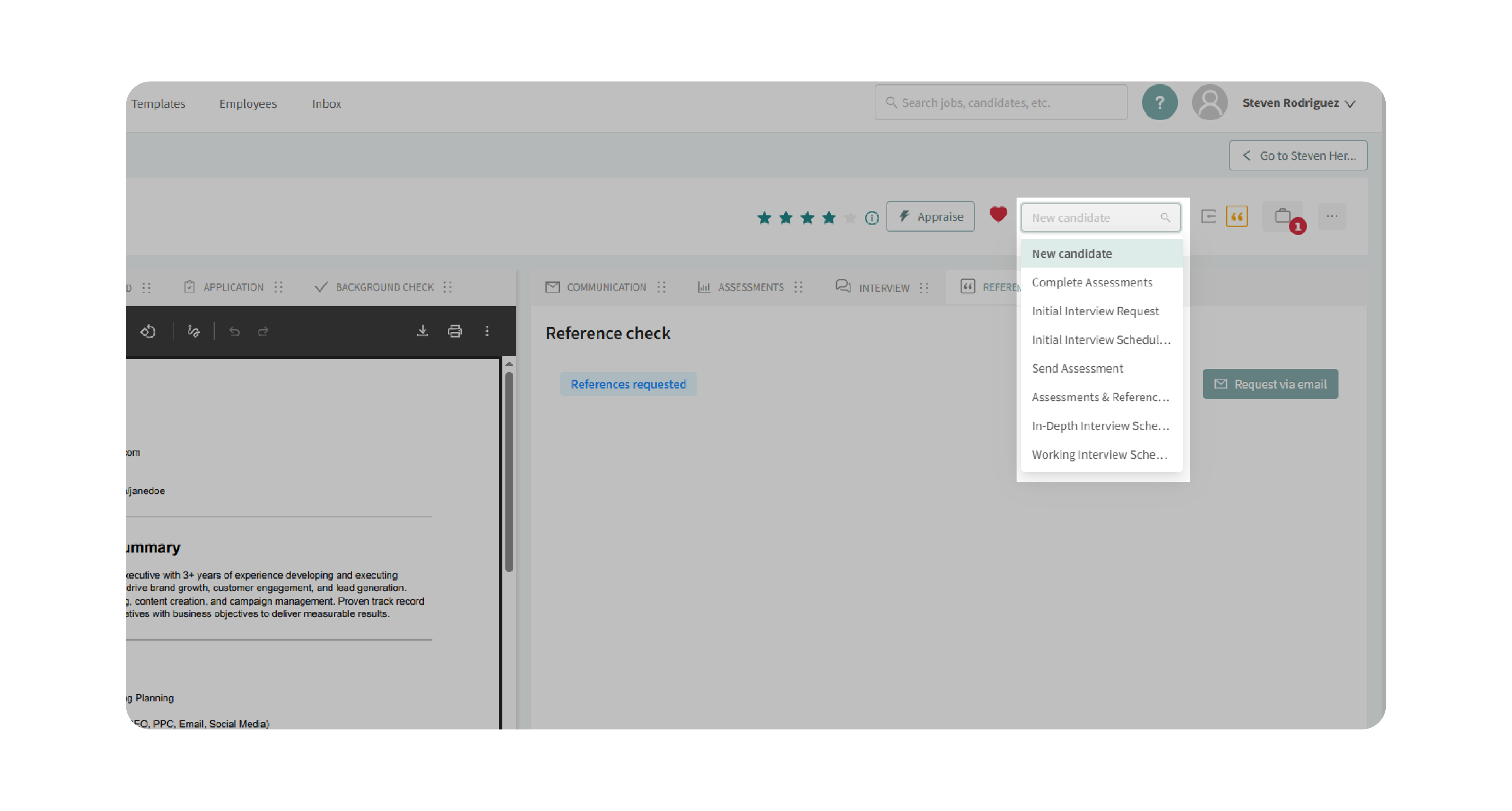 With the header, you no longer need to click through multiple tabs to get critical details—everything you need to understand and act on a candidate’s progress is right at your fingertips.