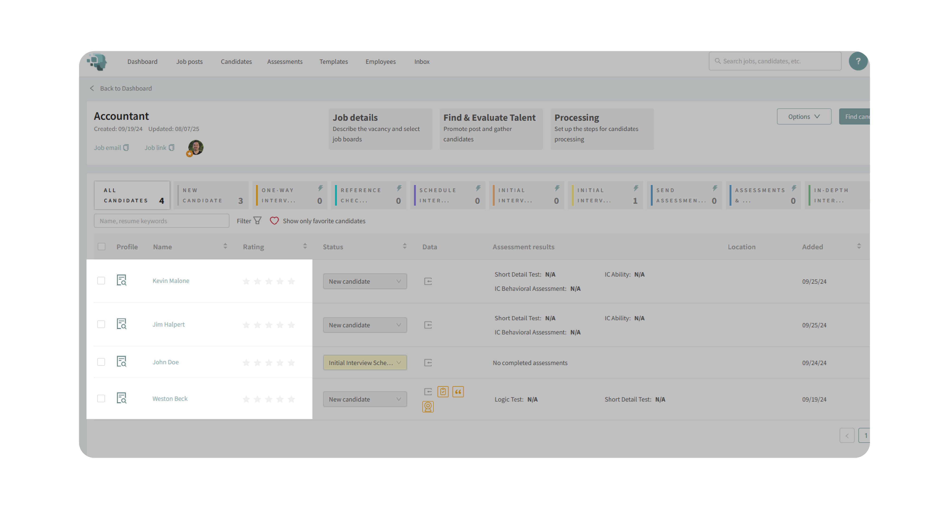 - Navigate to your job posting and open a candidate’s profile by clicking their name.