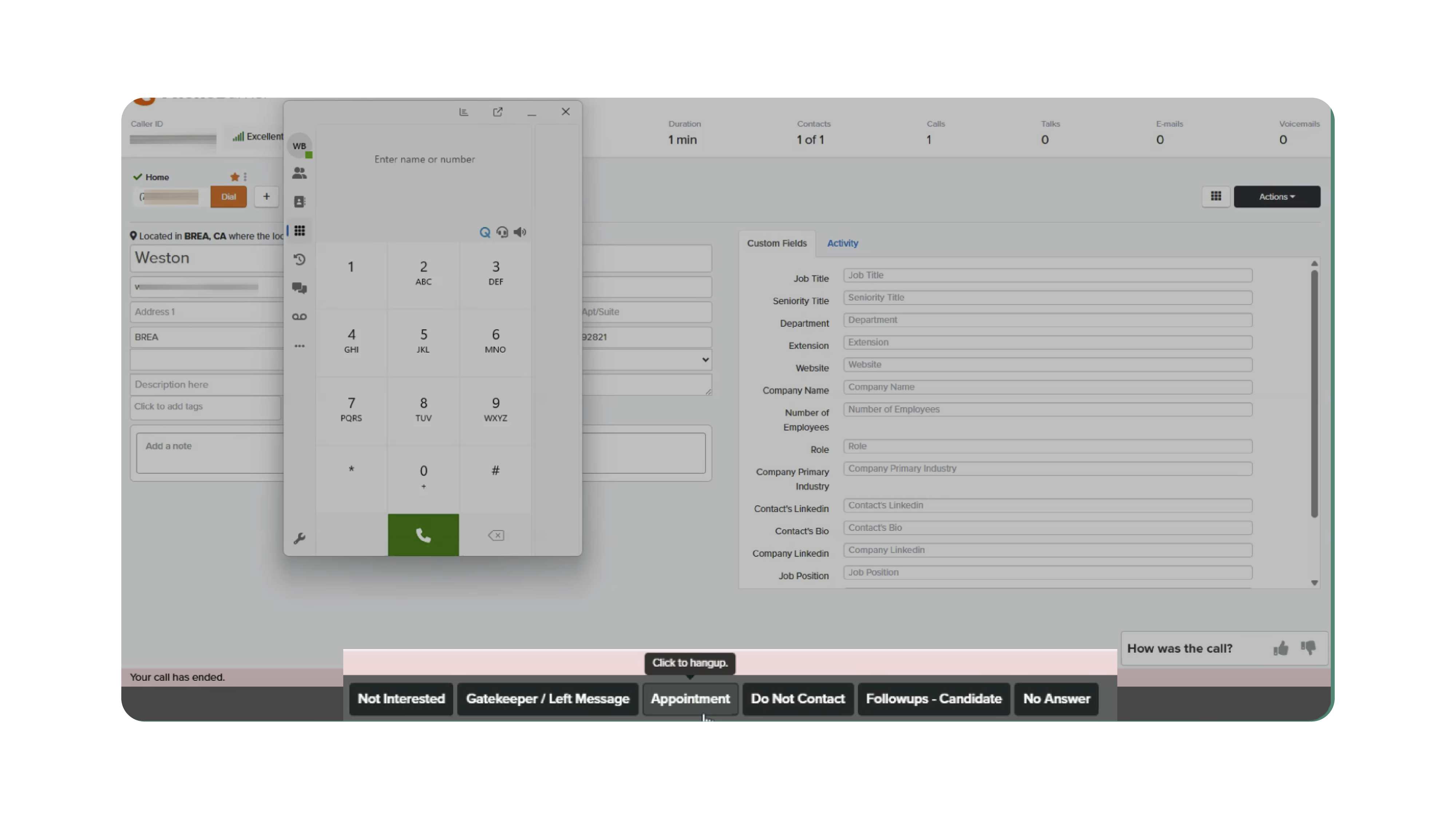 - Select a disposition (e.g., appointment, follow-up).