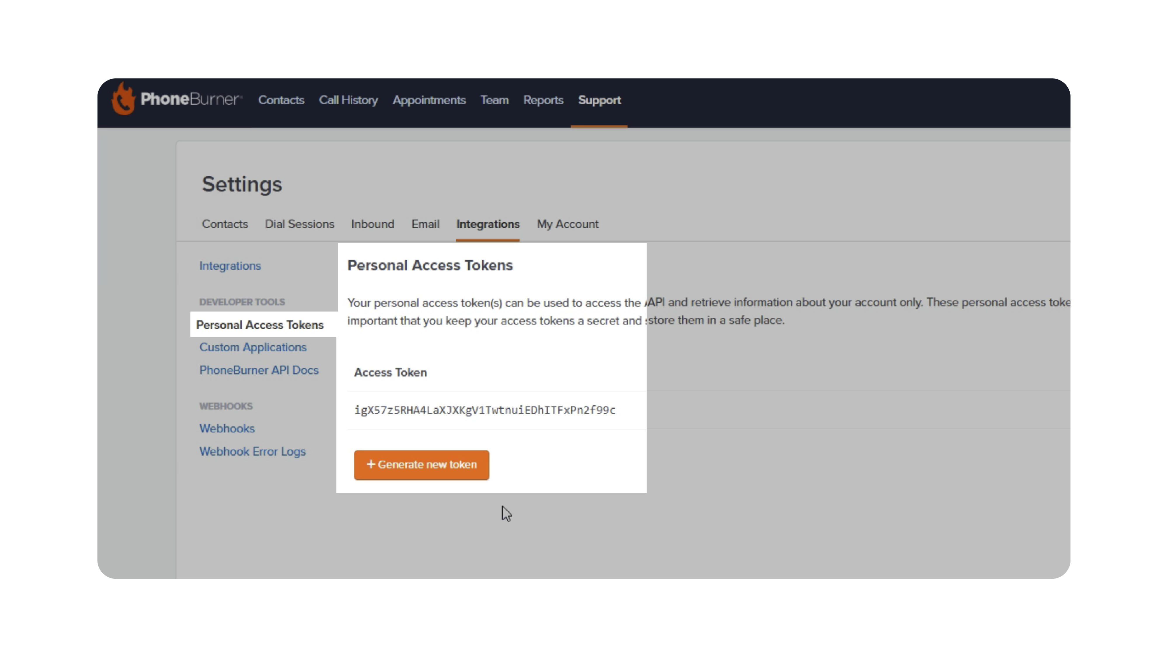Note: Access to Personal Access Tokens depends on your PhoneBurner subscription (mid-tier or higher required).