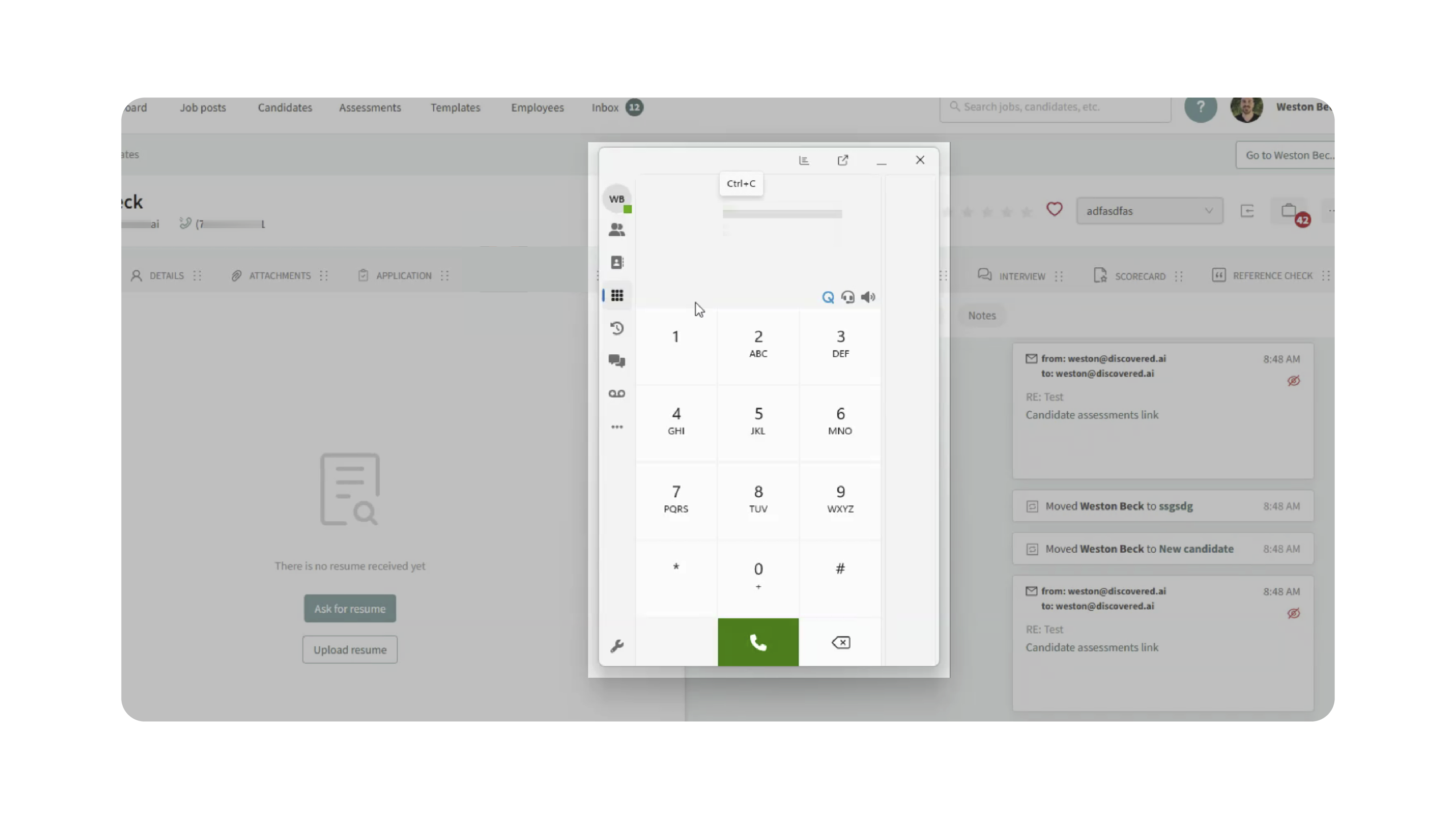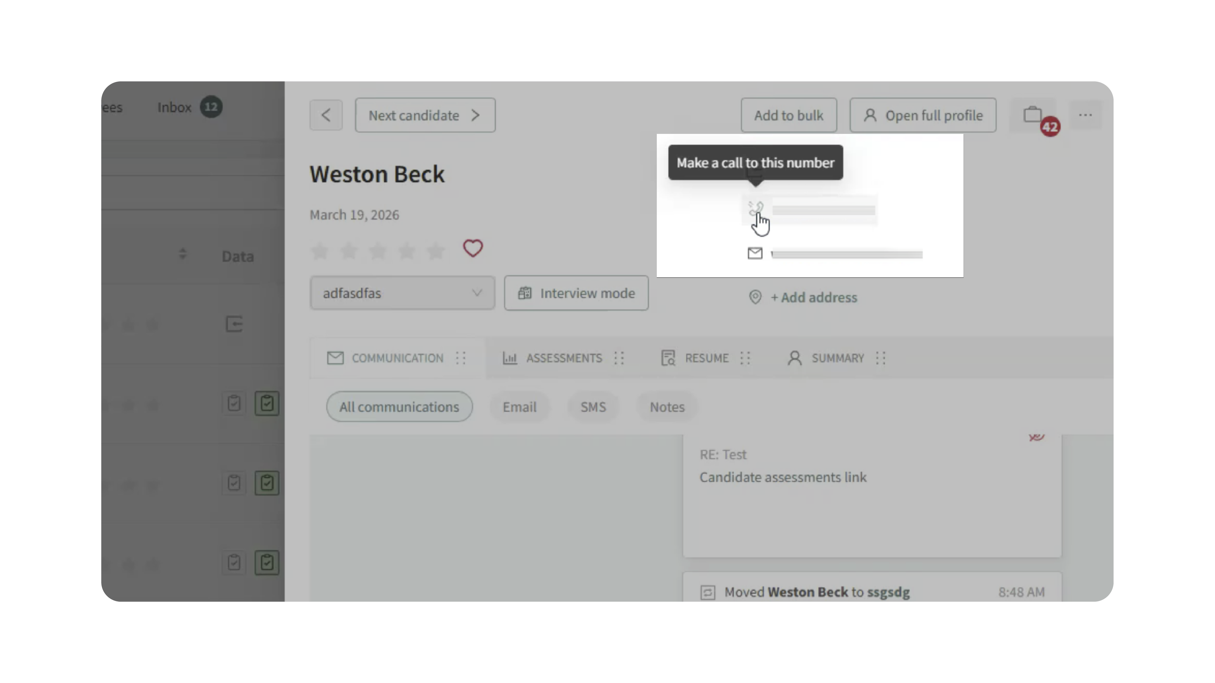 - You can call candidates instantly using Click-to-Dial
