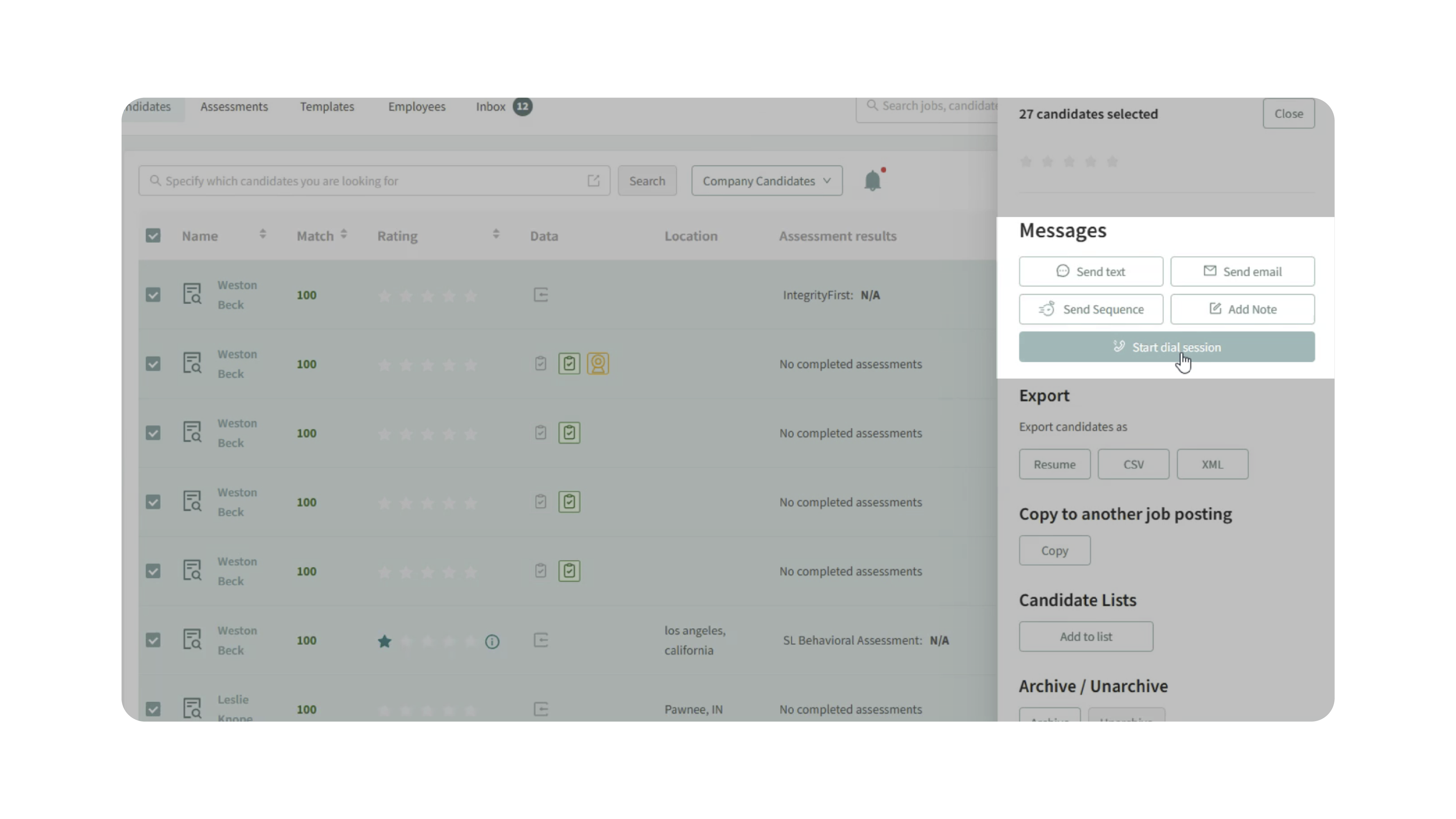 - Click Start Dialing to begin calling candidates sequentially.