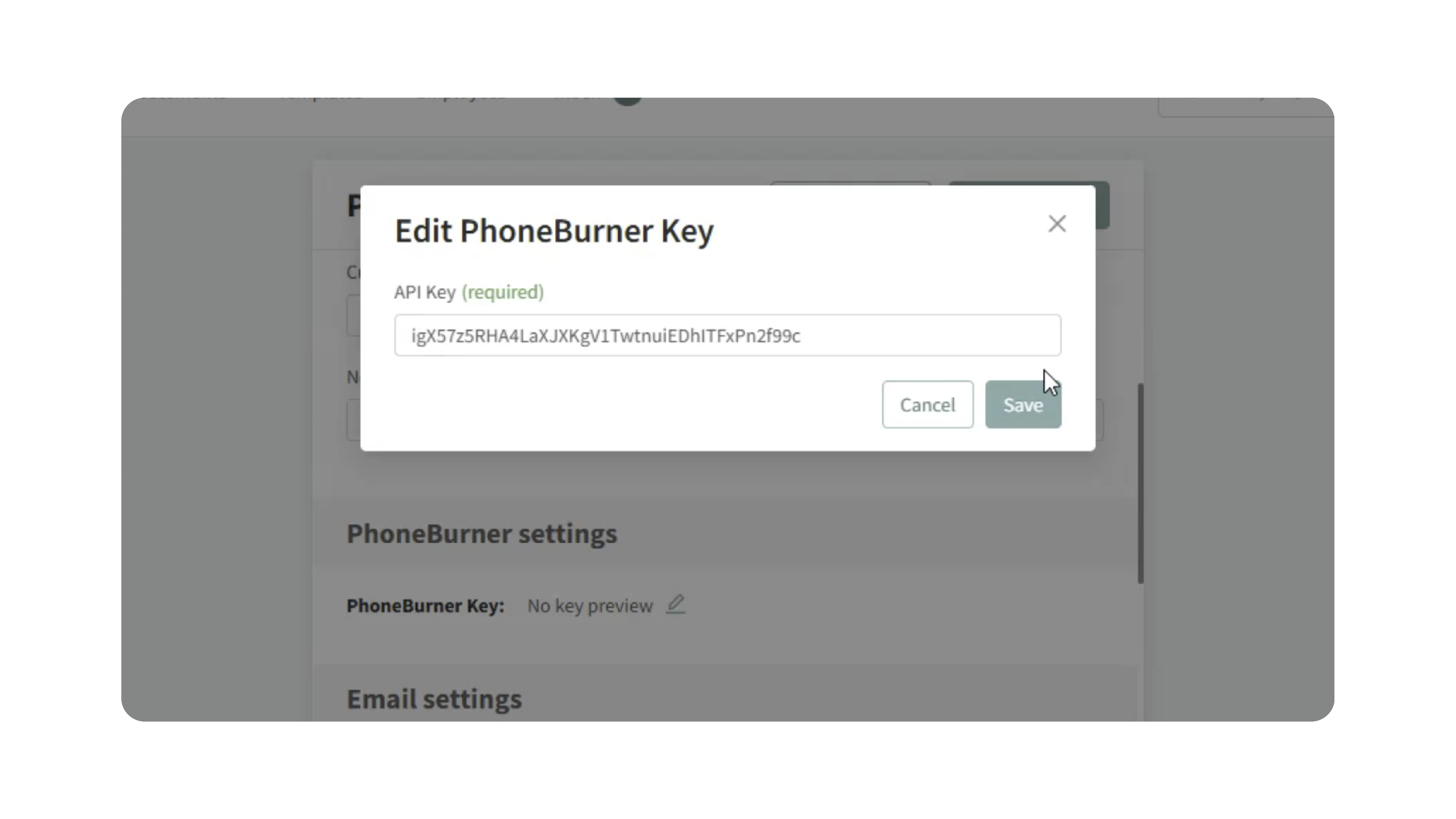 - Locate the PhoneBurner Settings section.