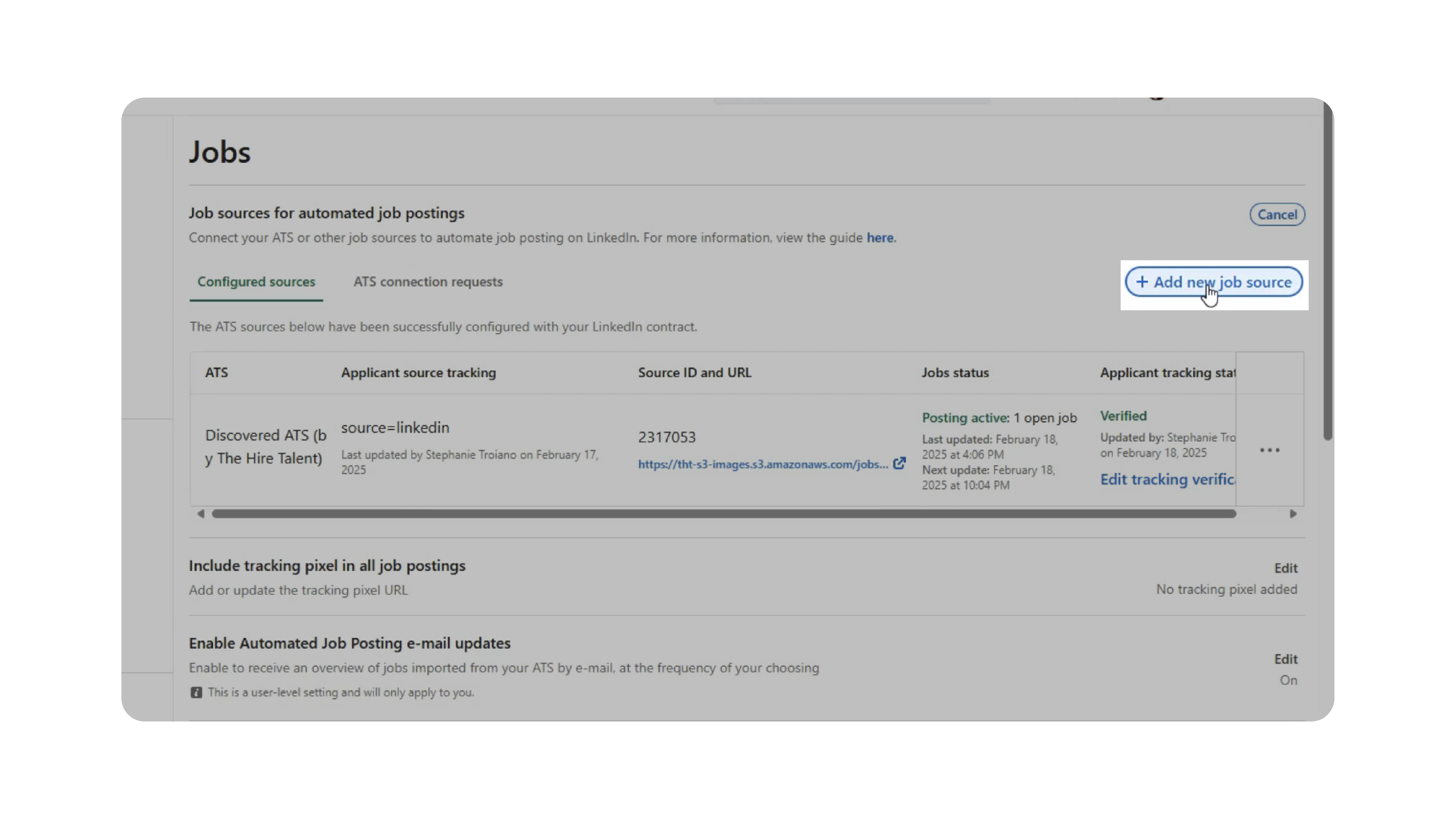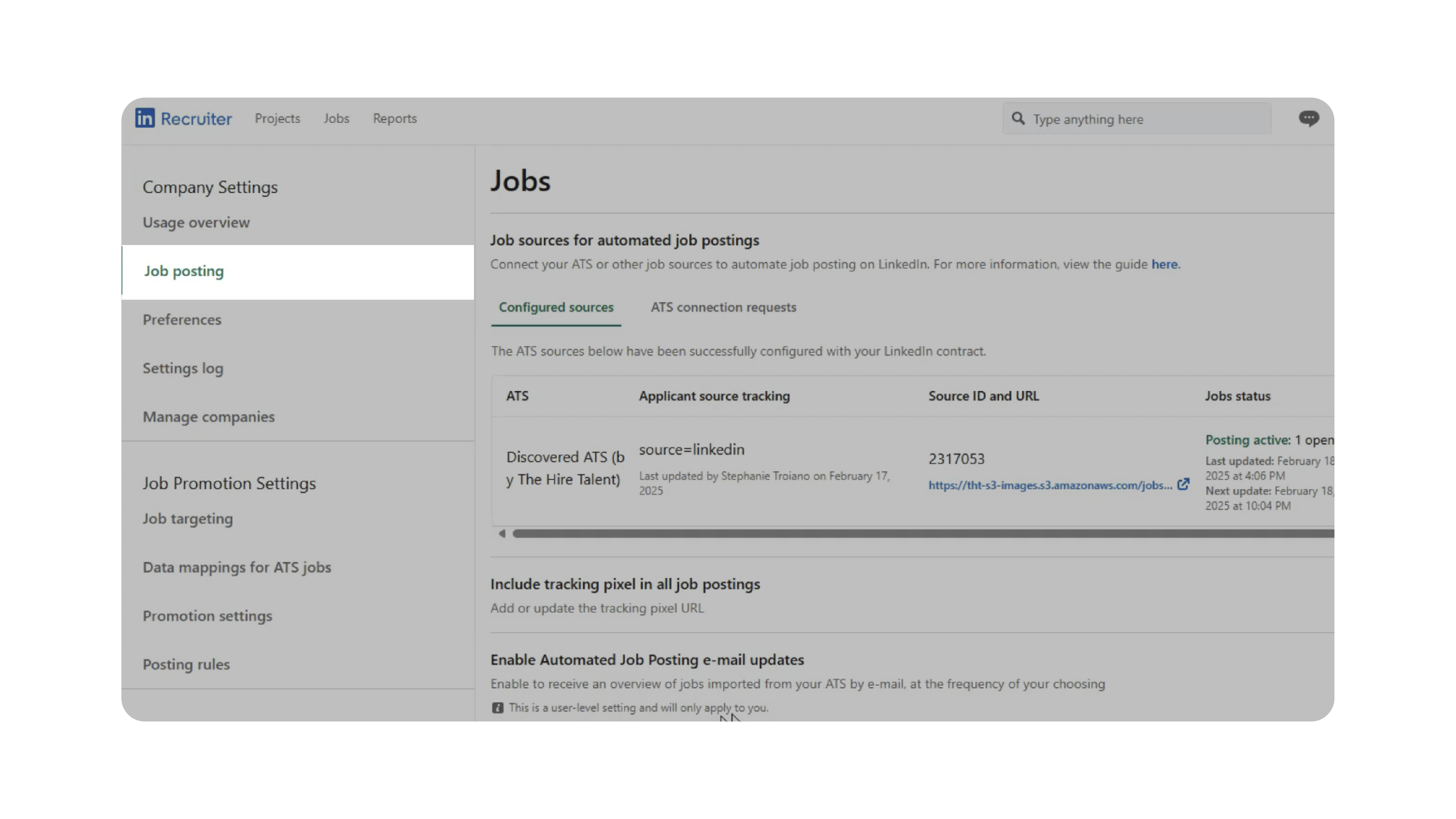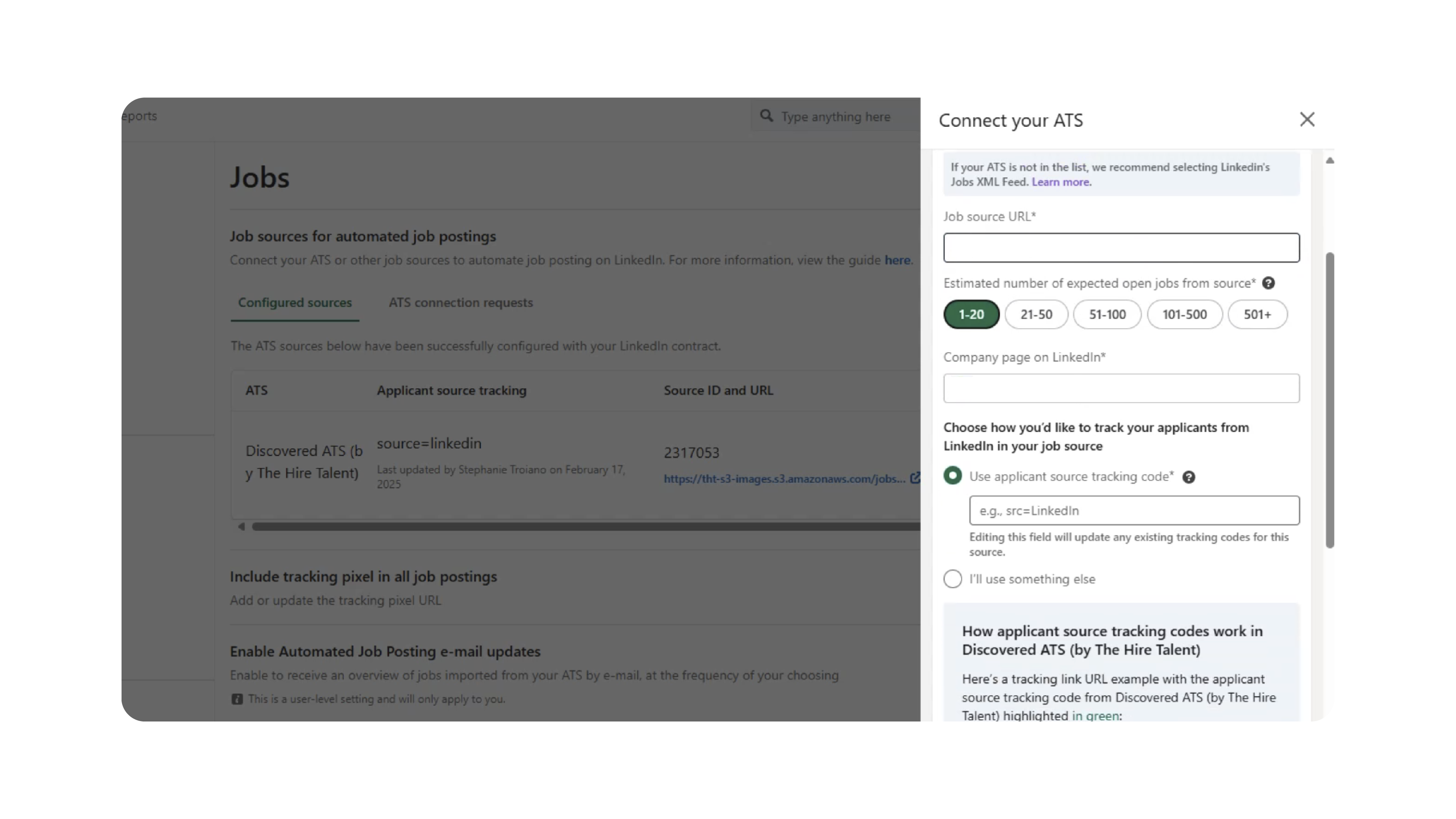 - Paste the URL into LinkedIn’s Job Source URL field.