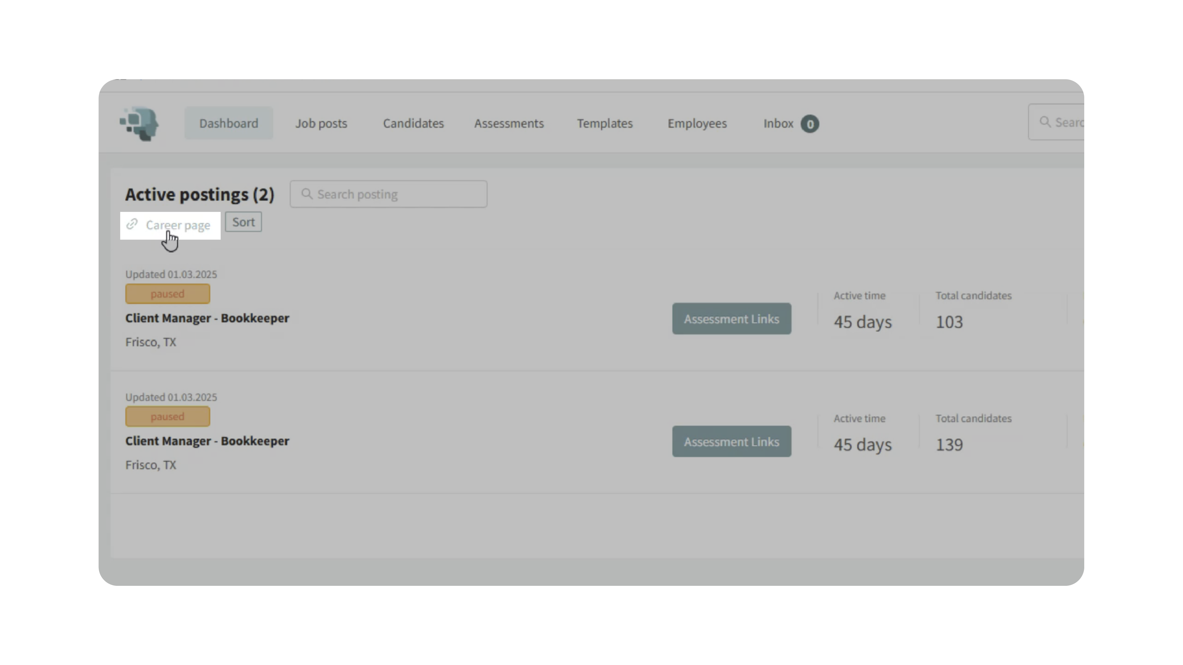 - In Discovered, go to your Company Page → click your Career Page link under Active Postings.