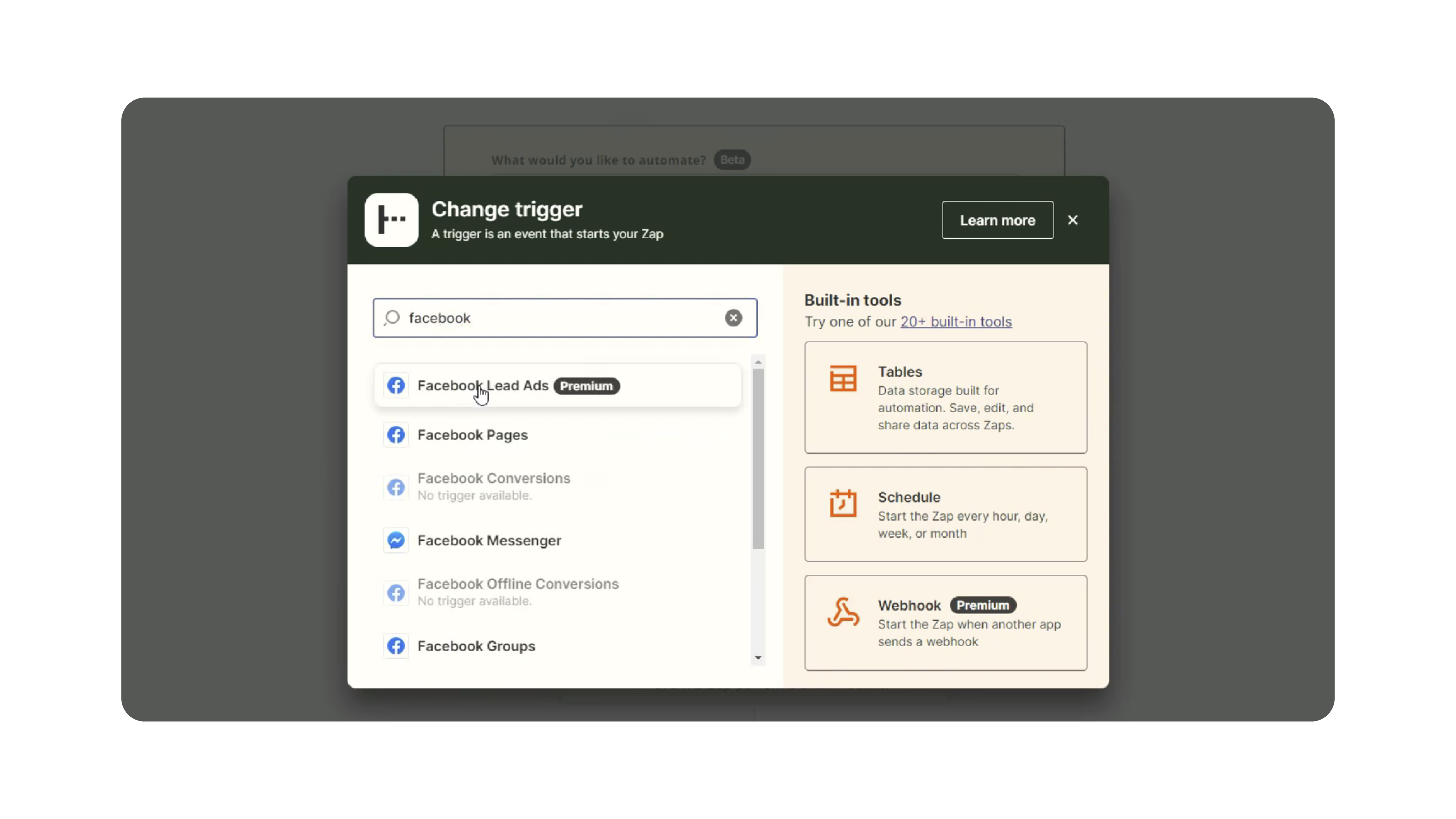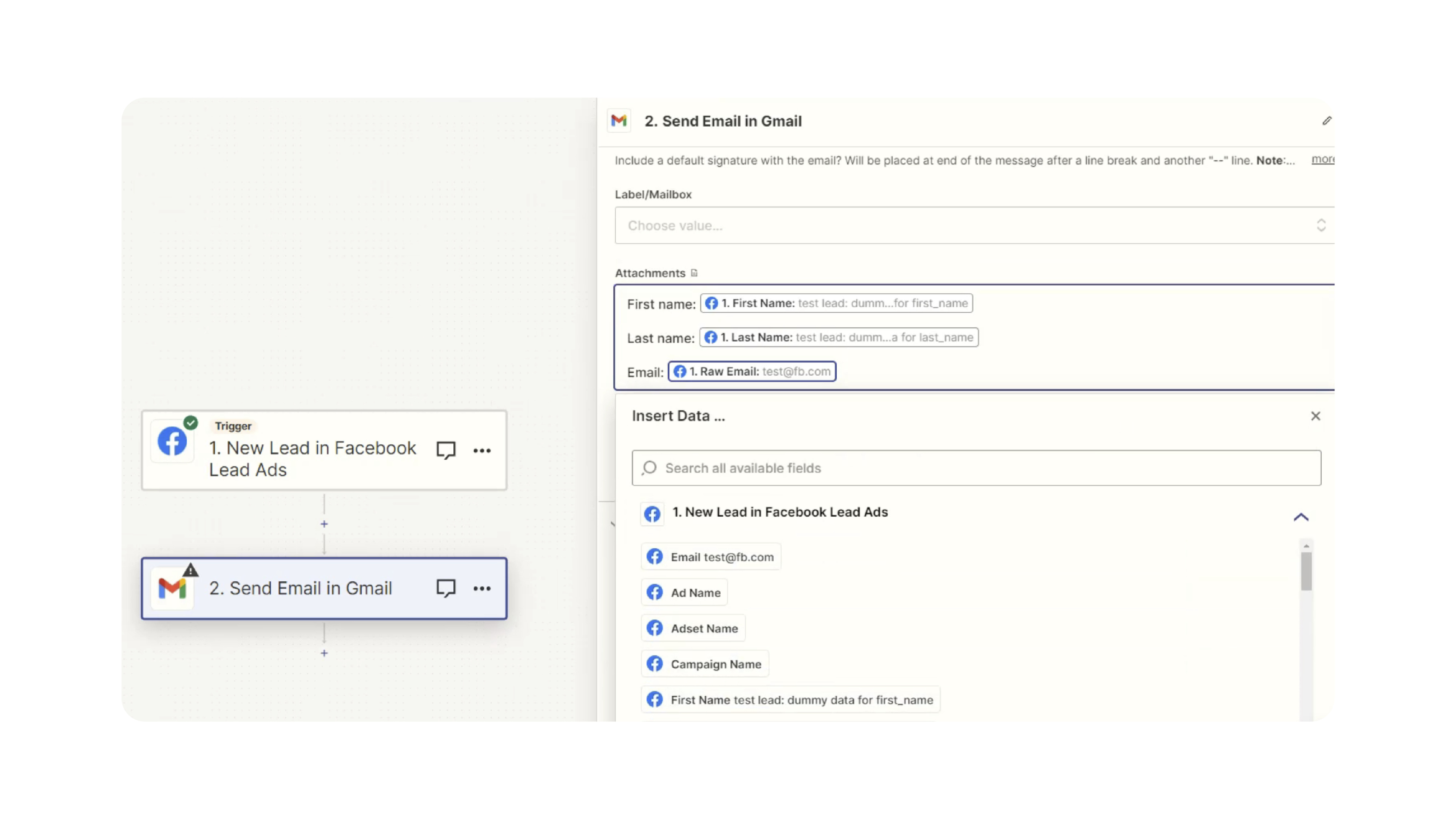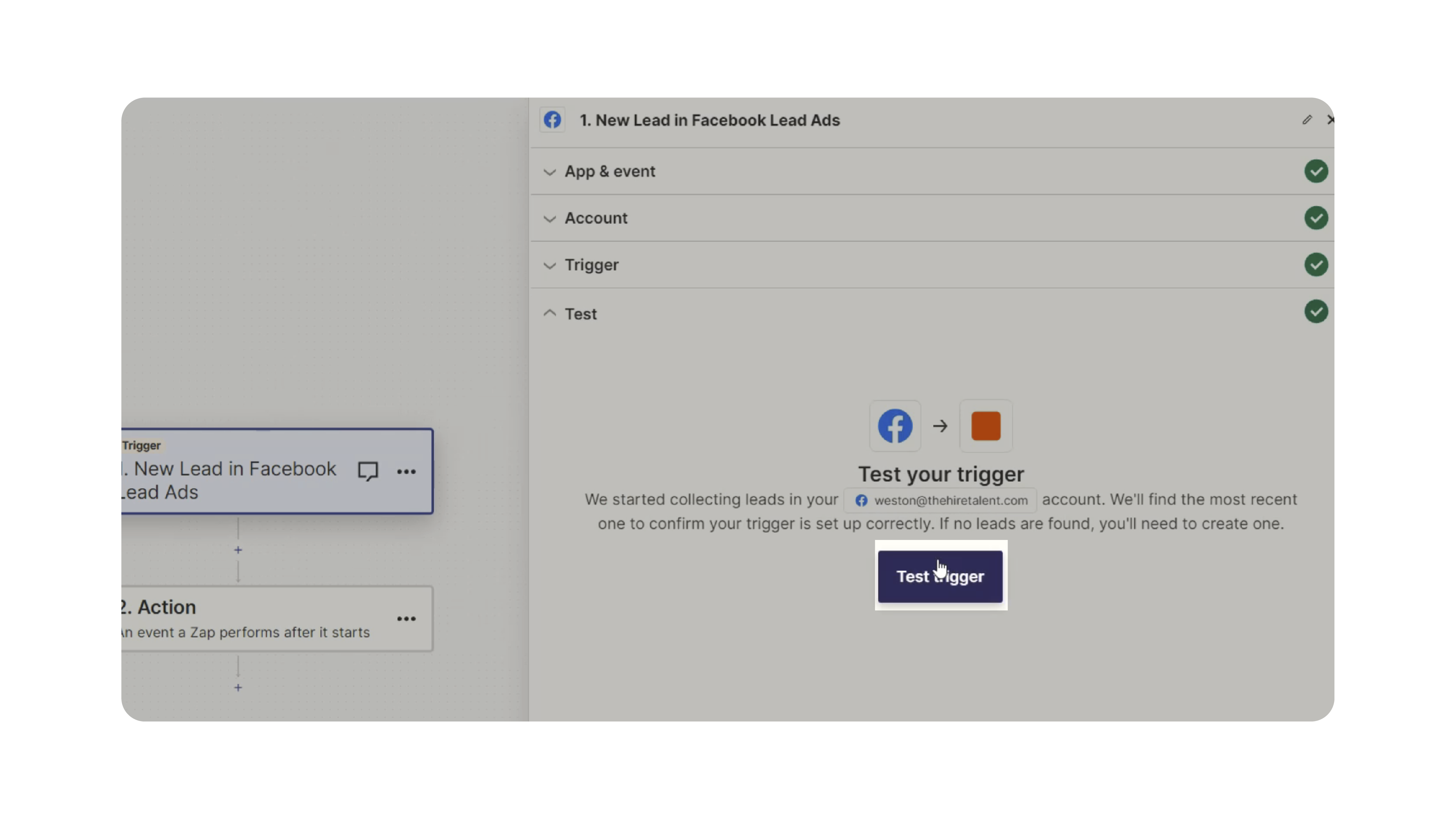 - Test the trigger to confirm Zapier retrieves sample lead data.