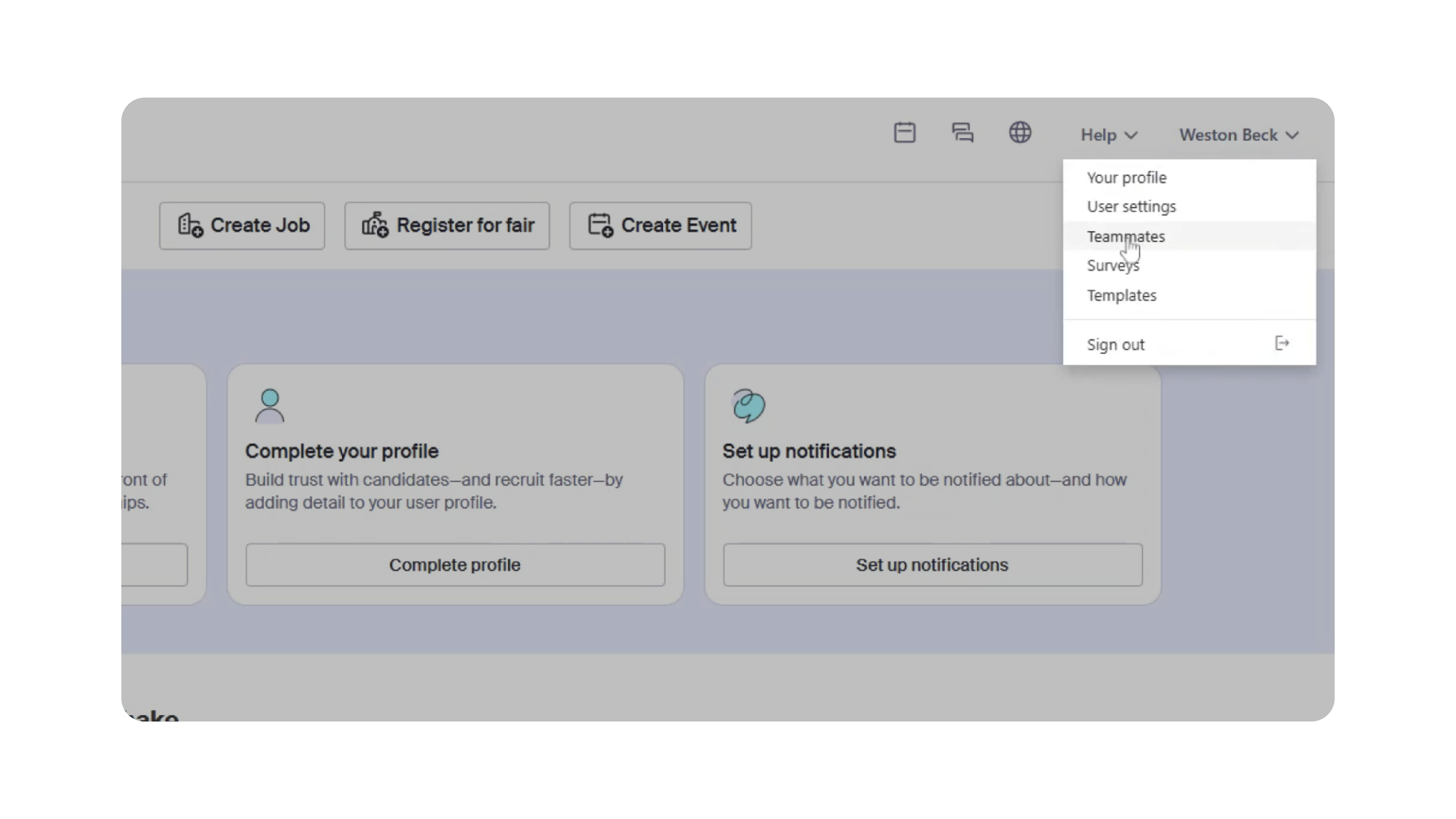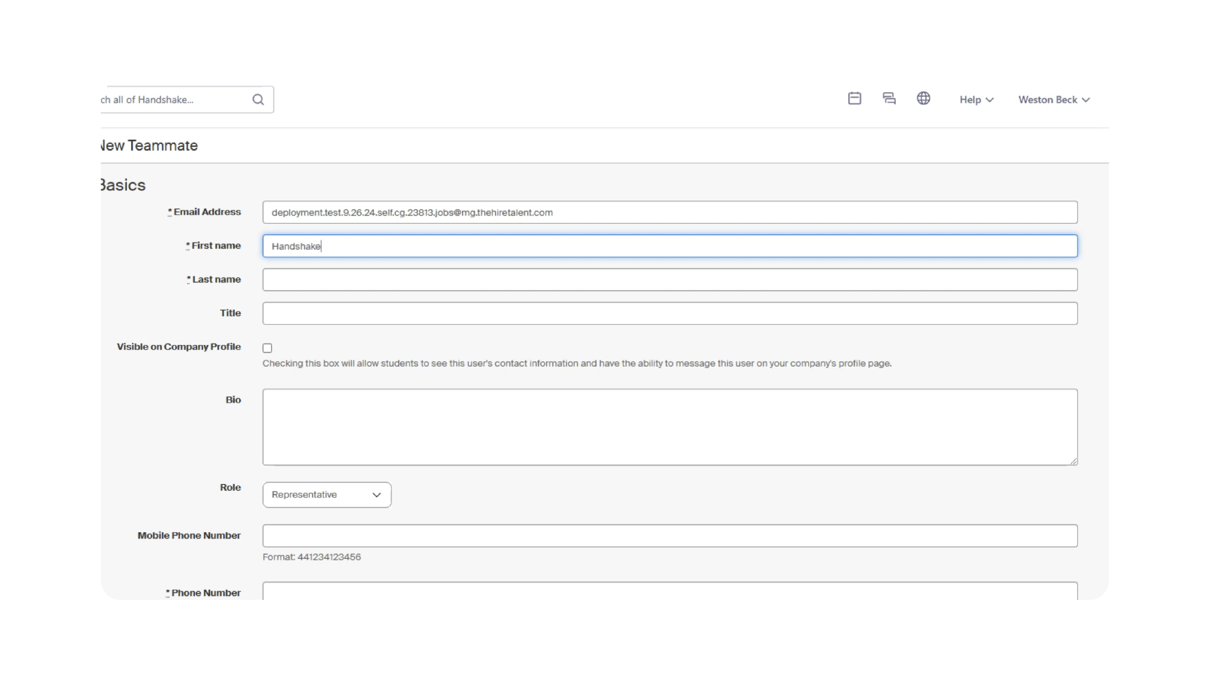 Handshake treats application recipients as teammates, so you must create a user that represents your job.