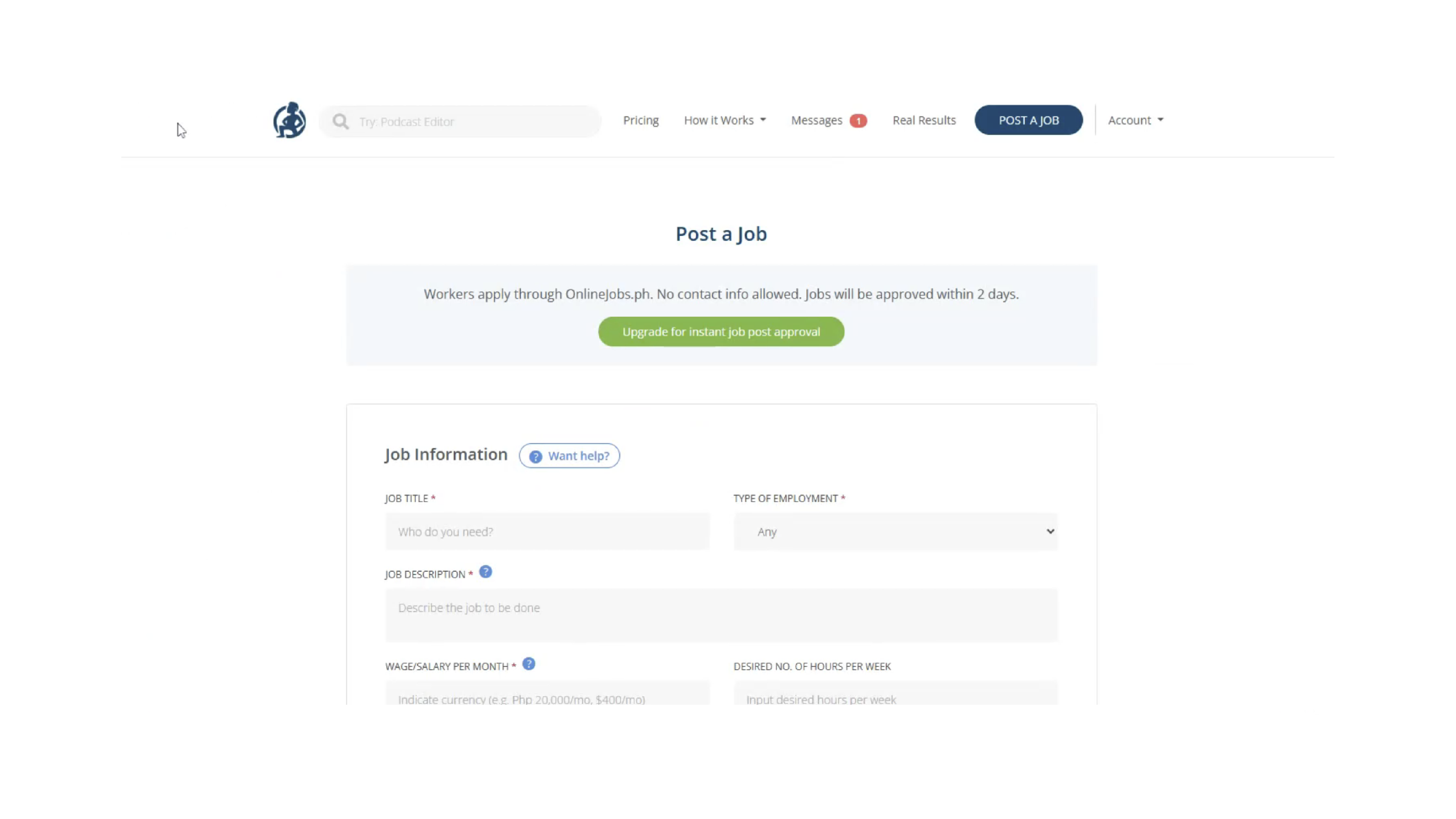 2. Create or Edit Your Job on OnlineJobs.ph: