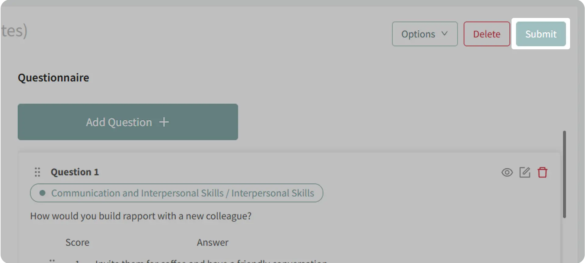- Within each skill group, click Add Skill and then Add Question.
