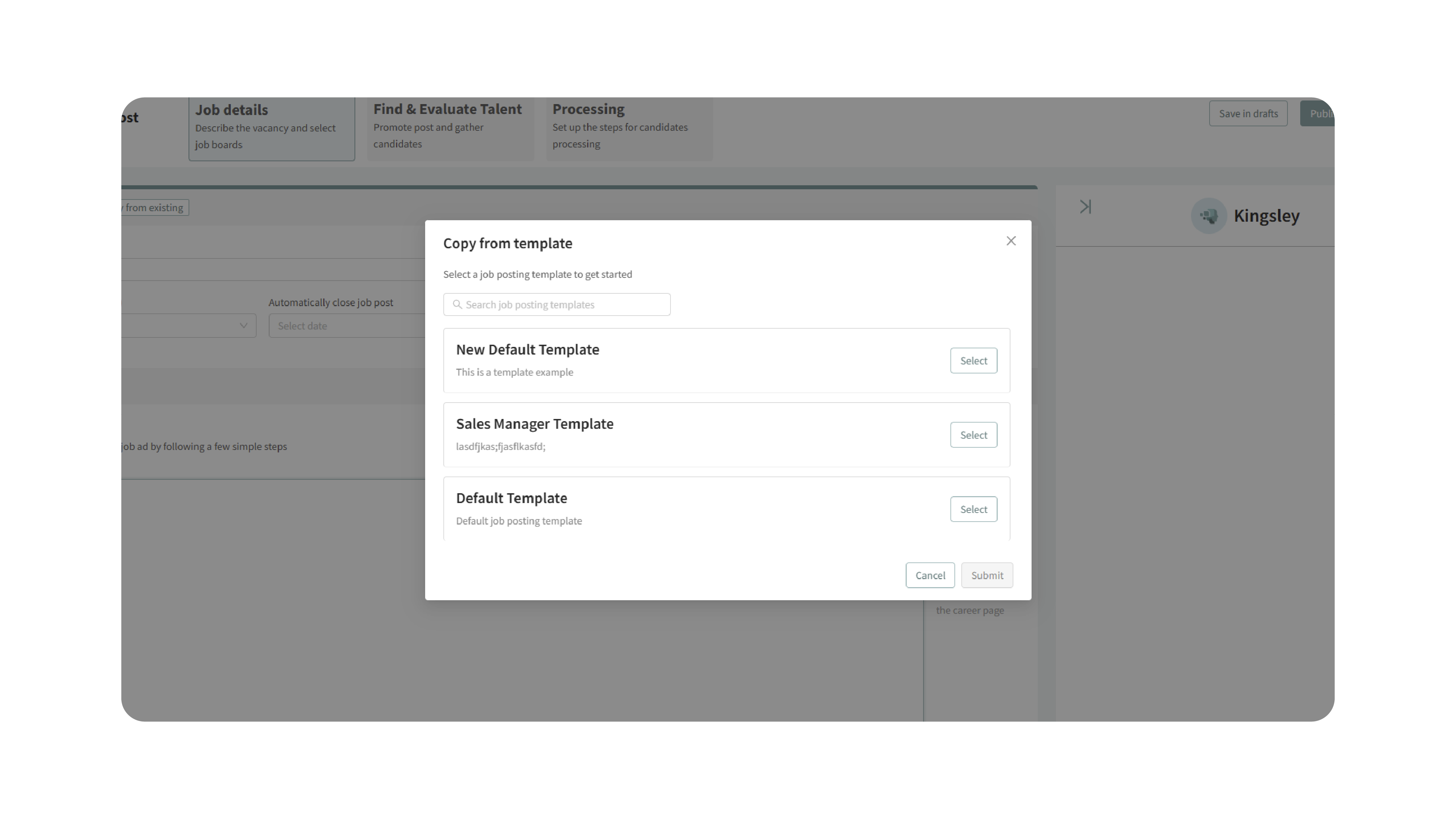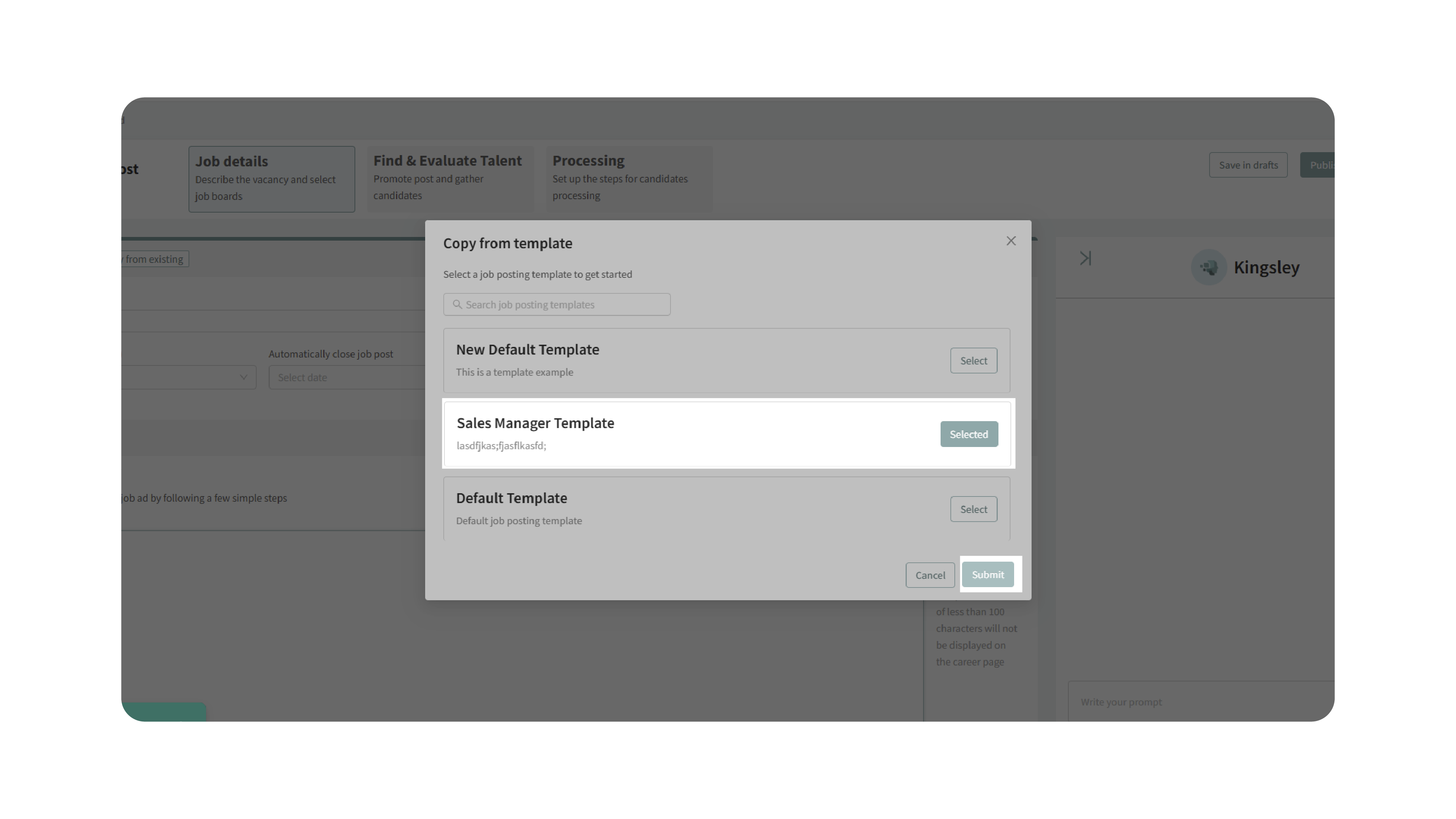- Recruiters: Quickly create postings for recurring roles across multiple departments.