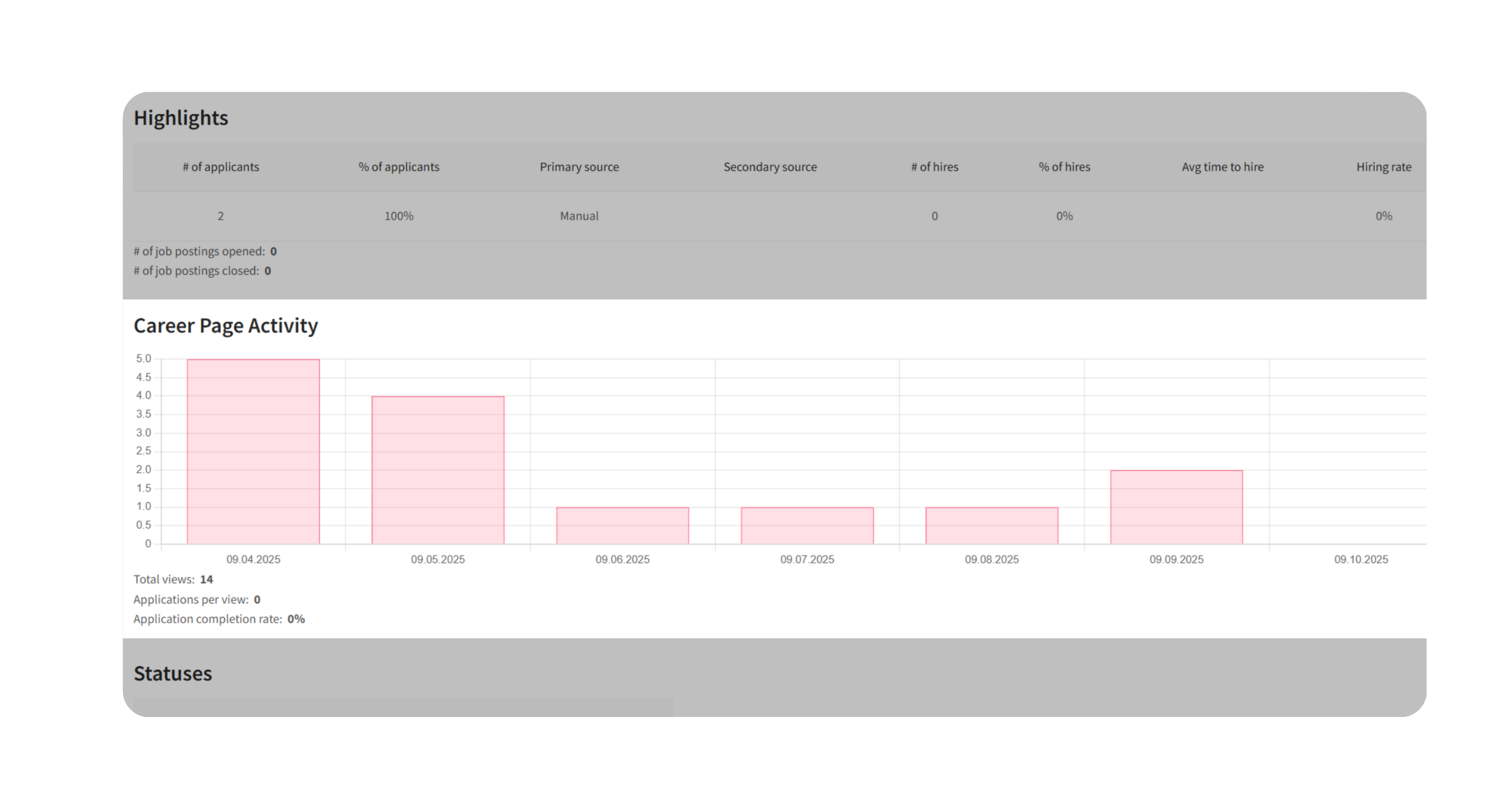 - Sources of applicants (e.g., LinkedIn, ZipRecruiter, direct links)