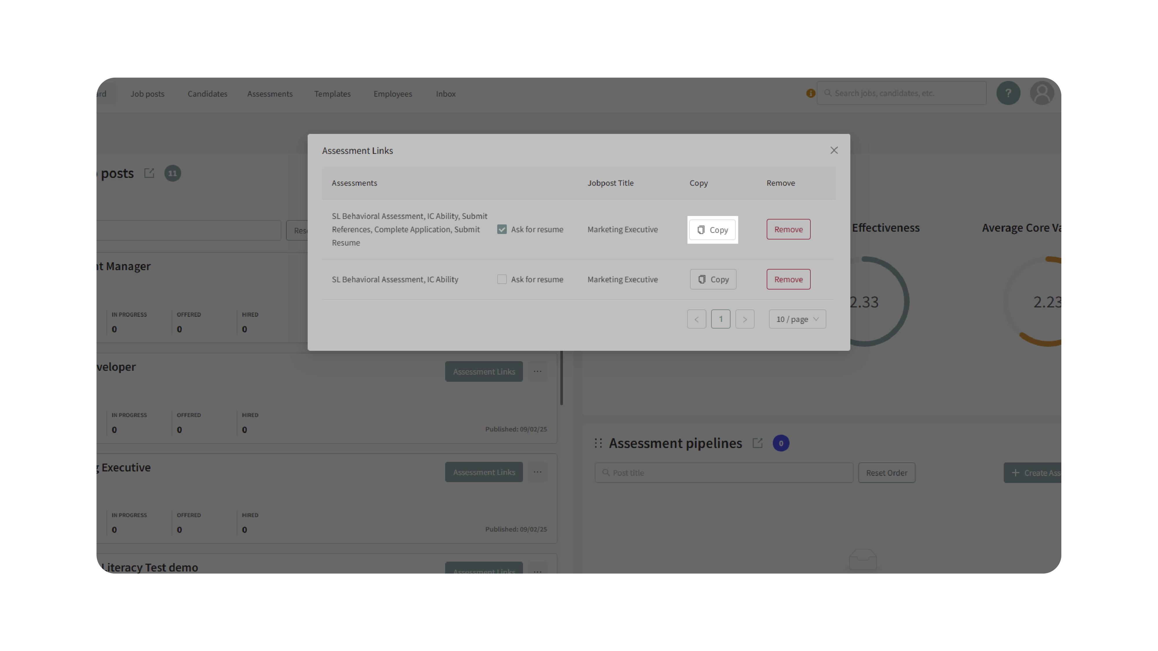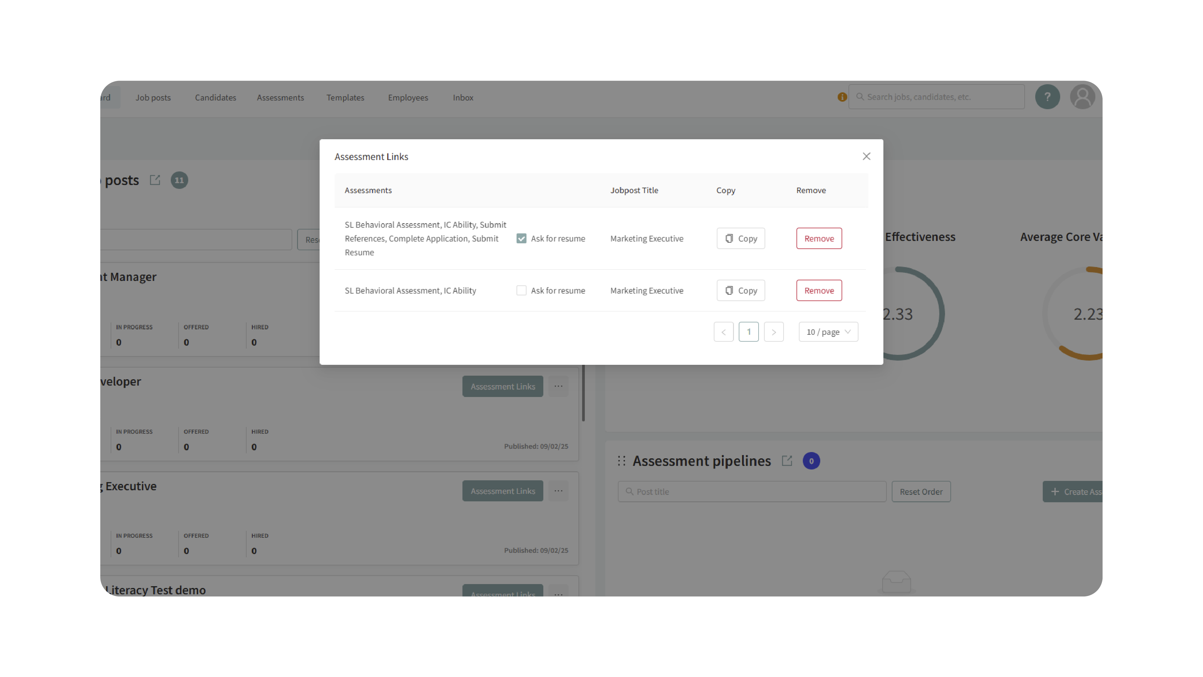 - Here, you’ll see which assessments are associated with that job.