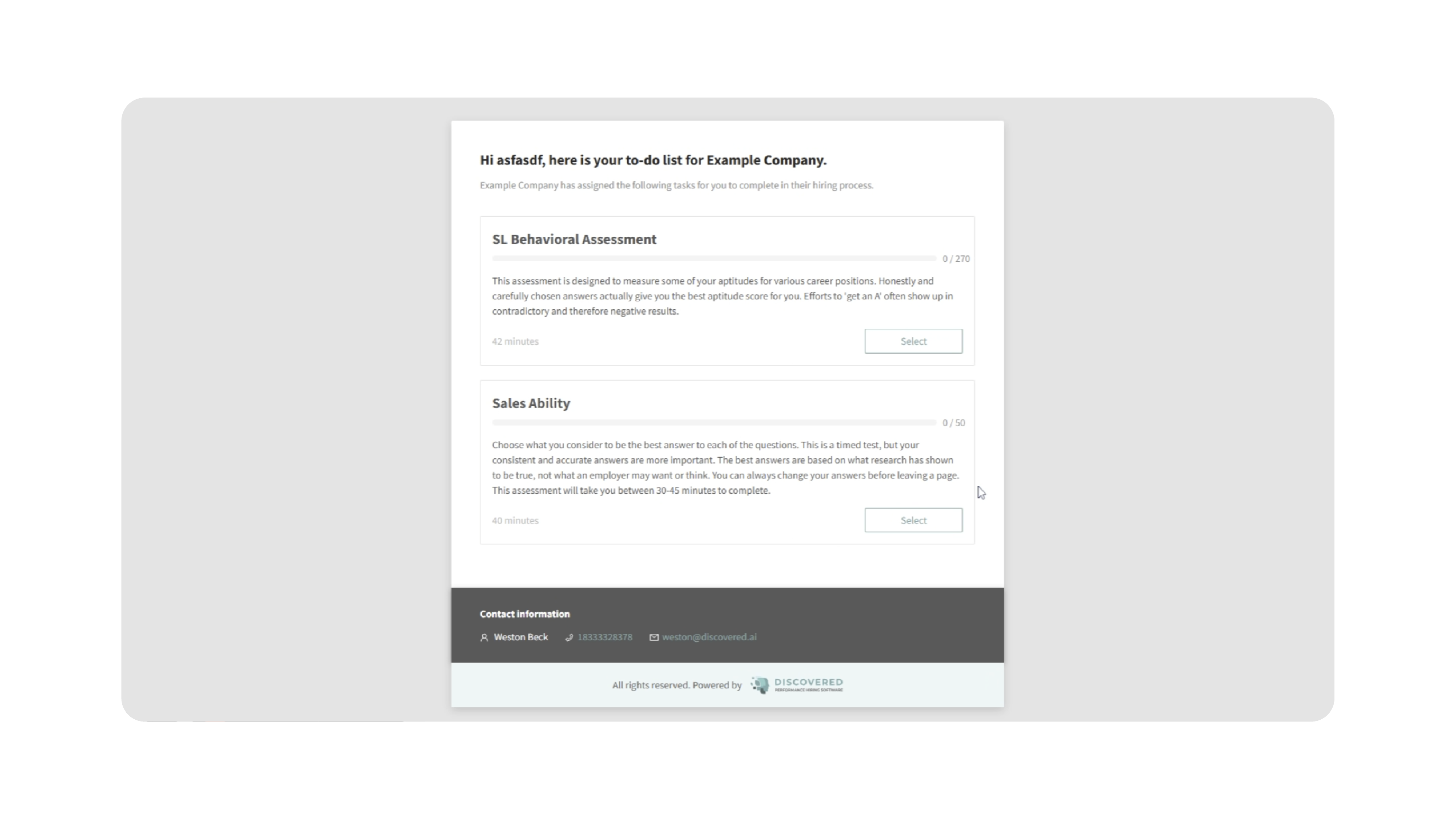 - Recruiters can monitor results, view submissions, and take action directly from within Discovered.