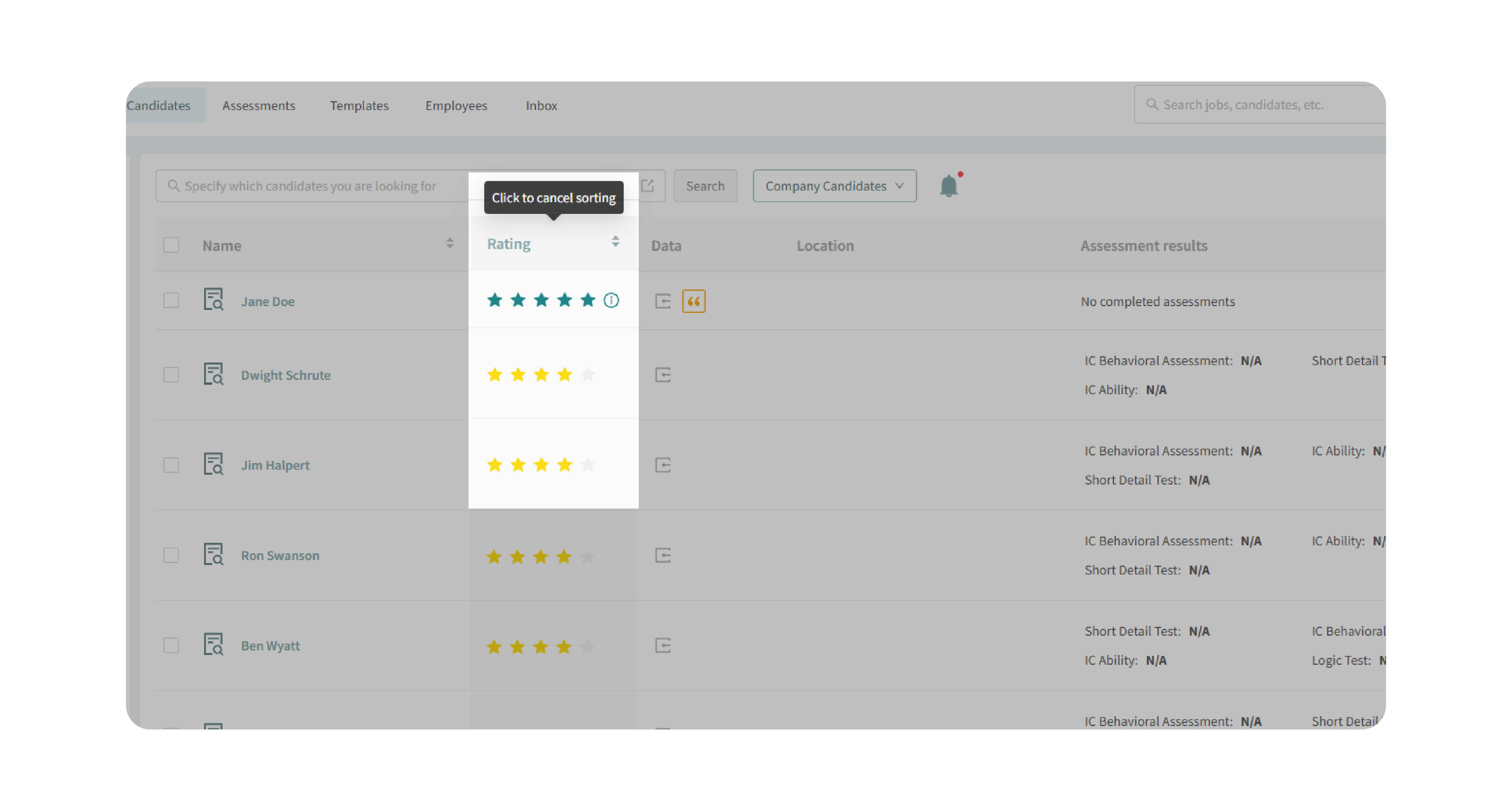 - Use the sorting feature to reorder candidates, placing the highest-rated at the top for faster prioritization.