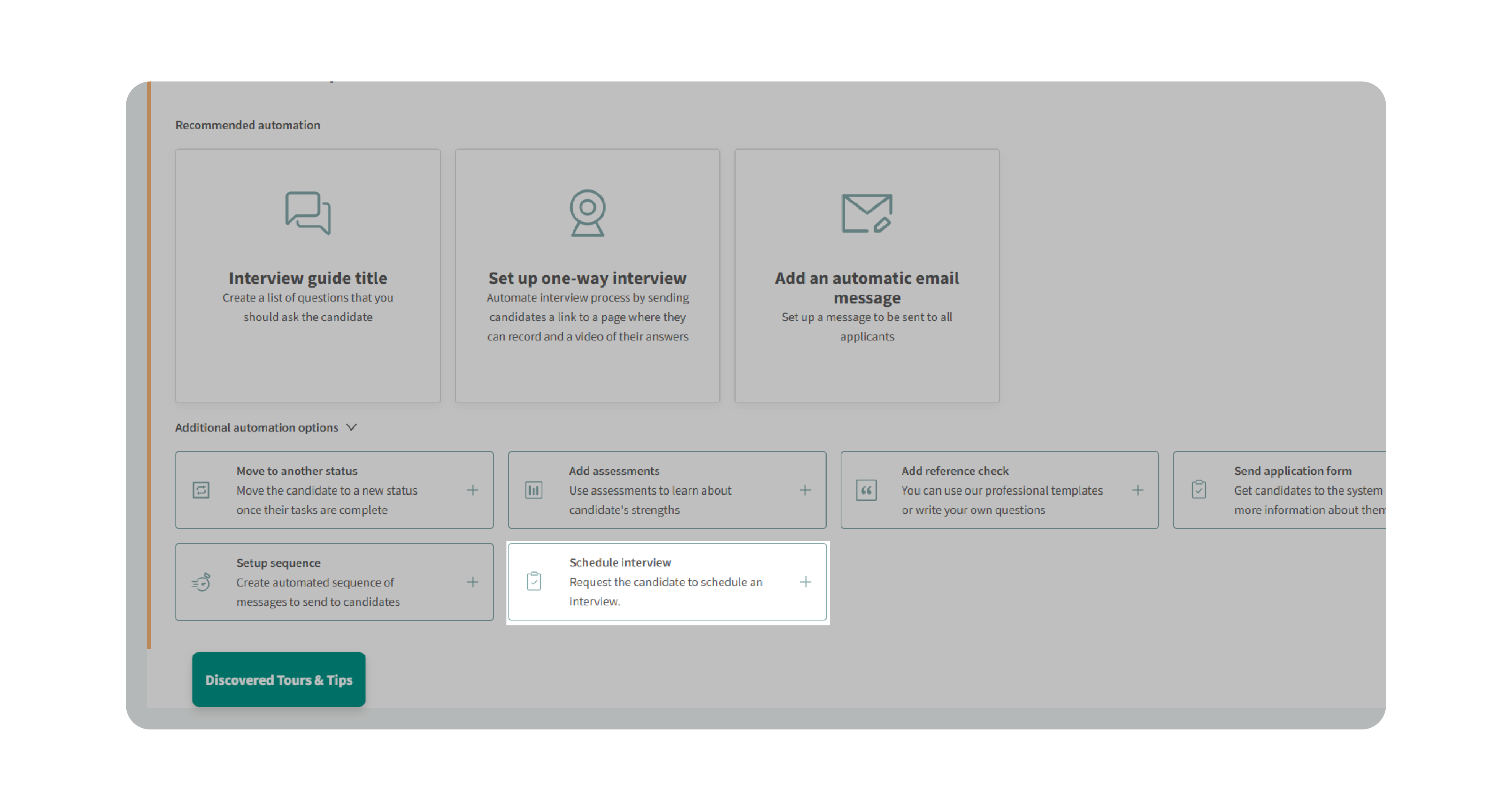 Coordinating interviews with candidates can be time-consuming. With Discovered’s Schedule Meeting automation, you can streamline this step by allowing candidates to book time directly on your calendar. Once a candidate schedules a meeting, the system automatically marks the task as complete—ensuring accurate tracking and a smoother workflow.