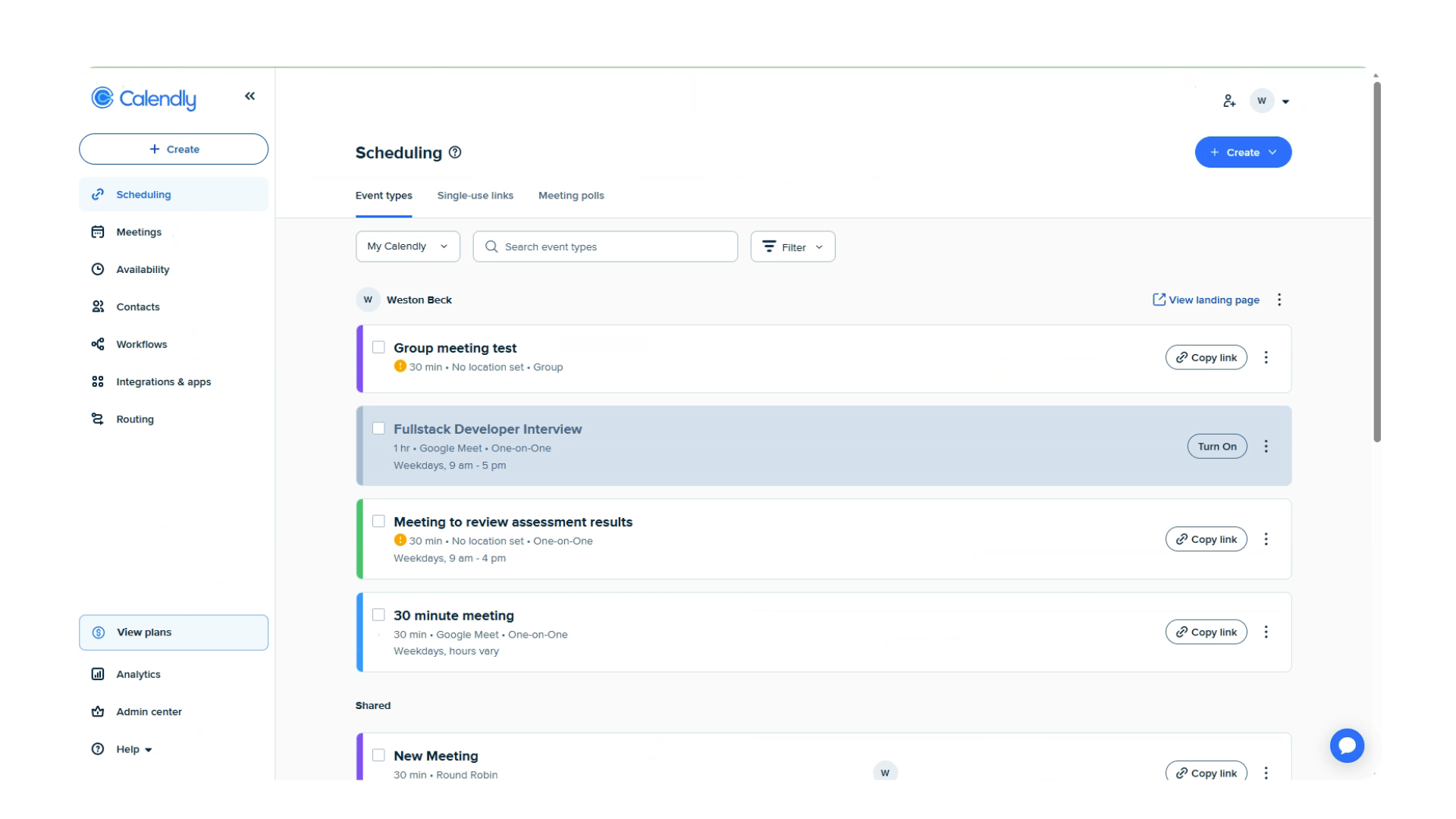 - Log in to Calendly and create or open the event you want to use for interviews.