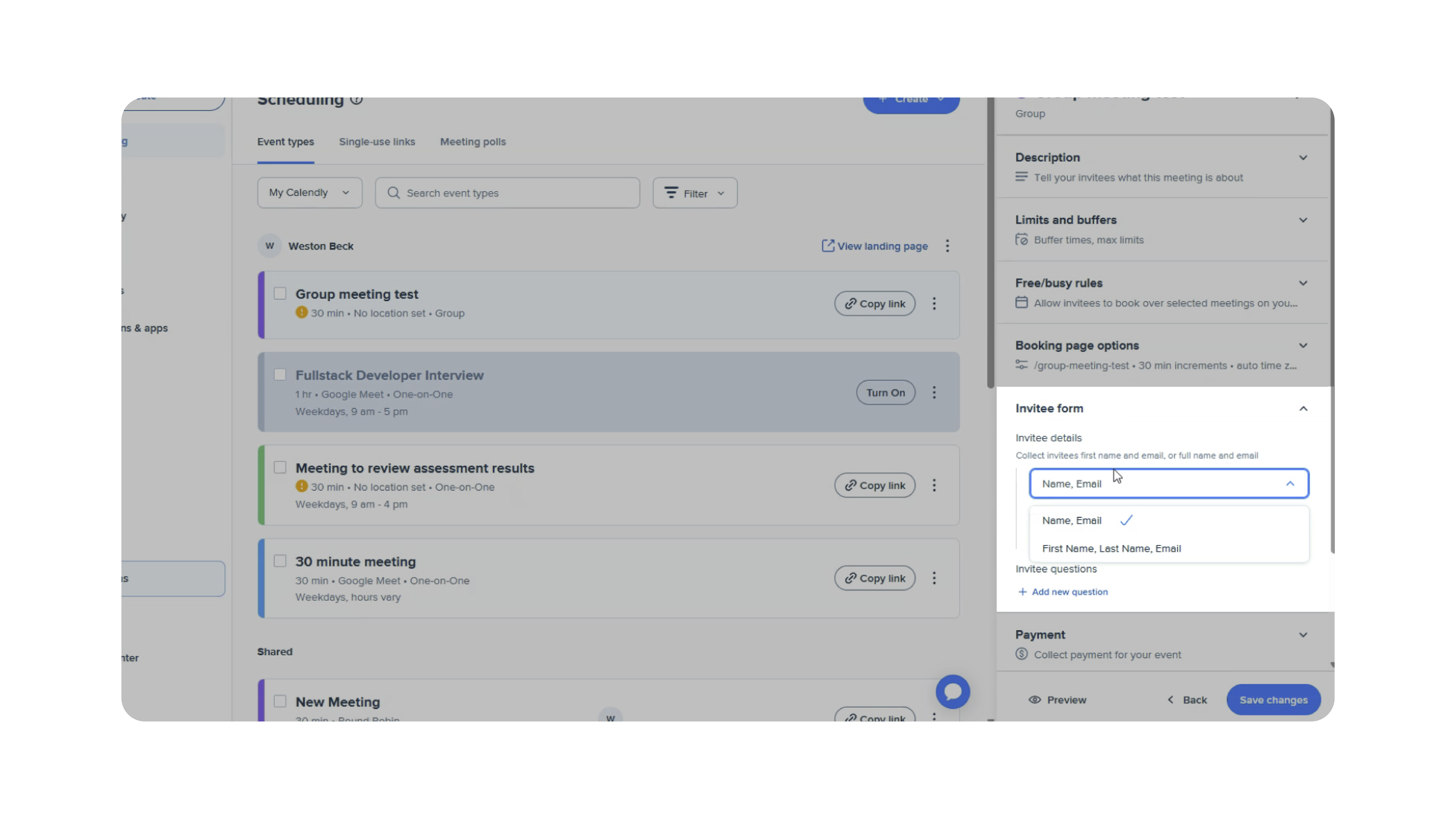 - Ensure the Name and Email fields are required in the Calendly invitee form.