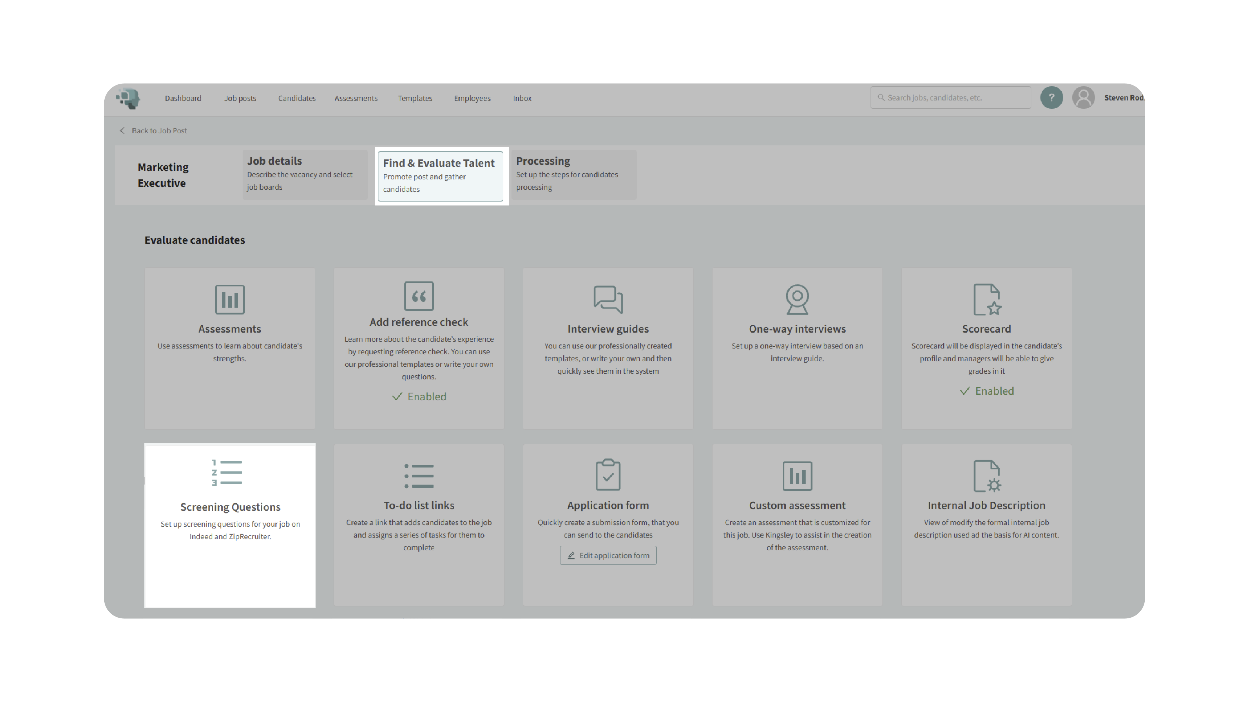 This feature helps ensure consistency, saves time, and improves the efficiency of your candidate evaluation process. It’s ideal for teams that want to standardize screening criteria while maintaining flexibility to adjust for each job.