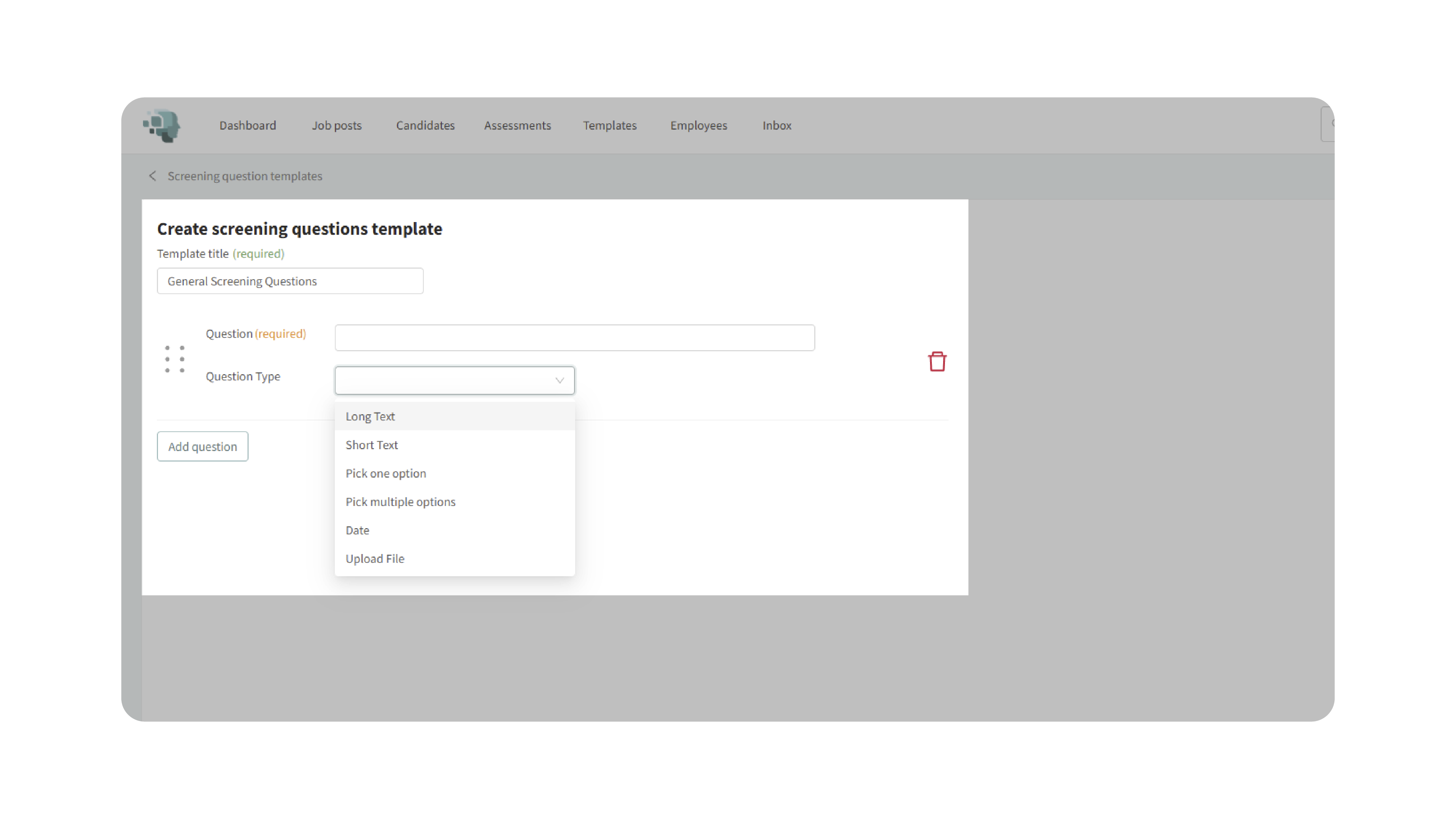 Screening Question Templates save recruiters time while ensuring that every job posting uses consistent, high-quality evaluation criteria. With reusable templates, you can: