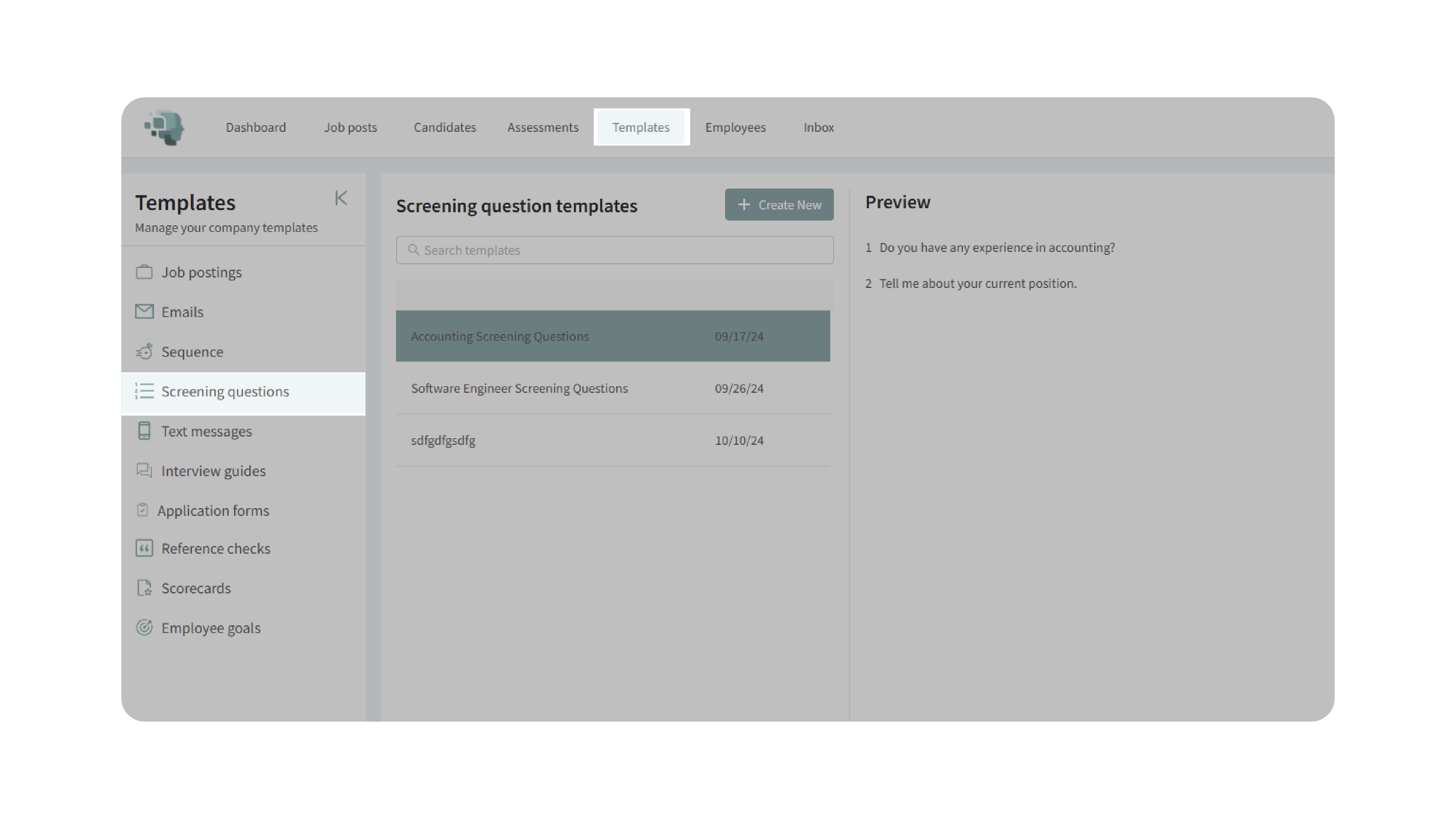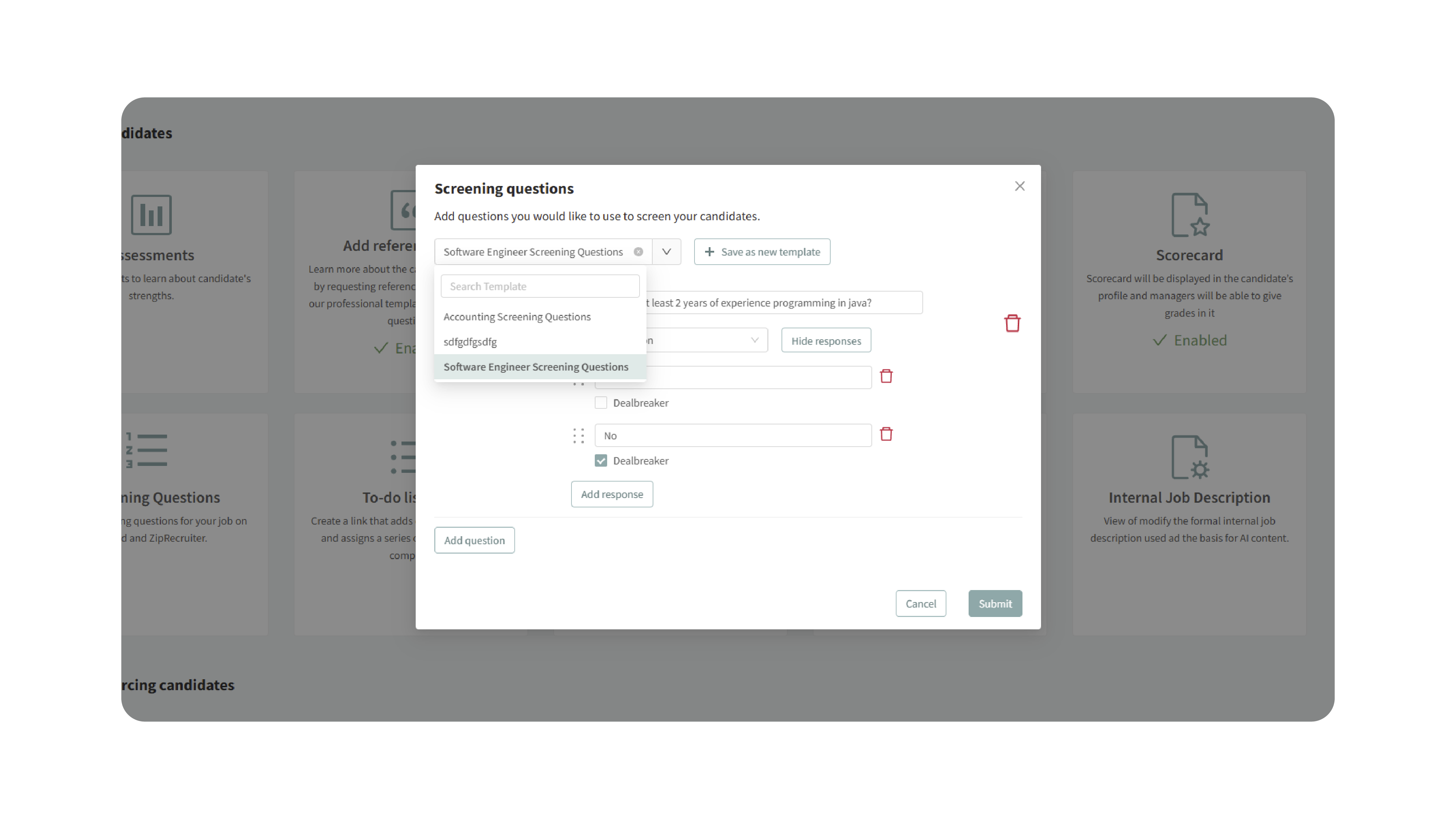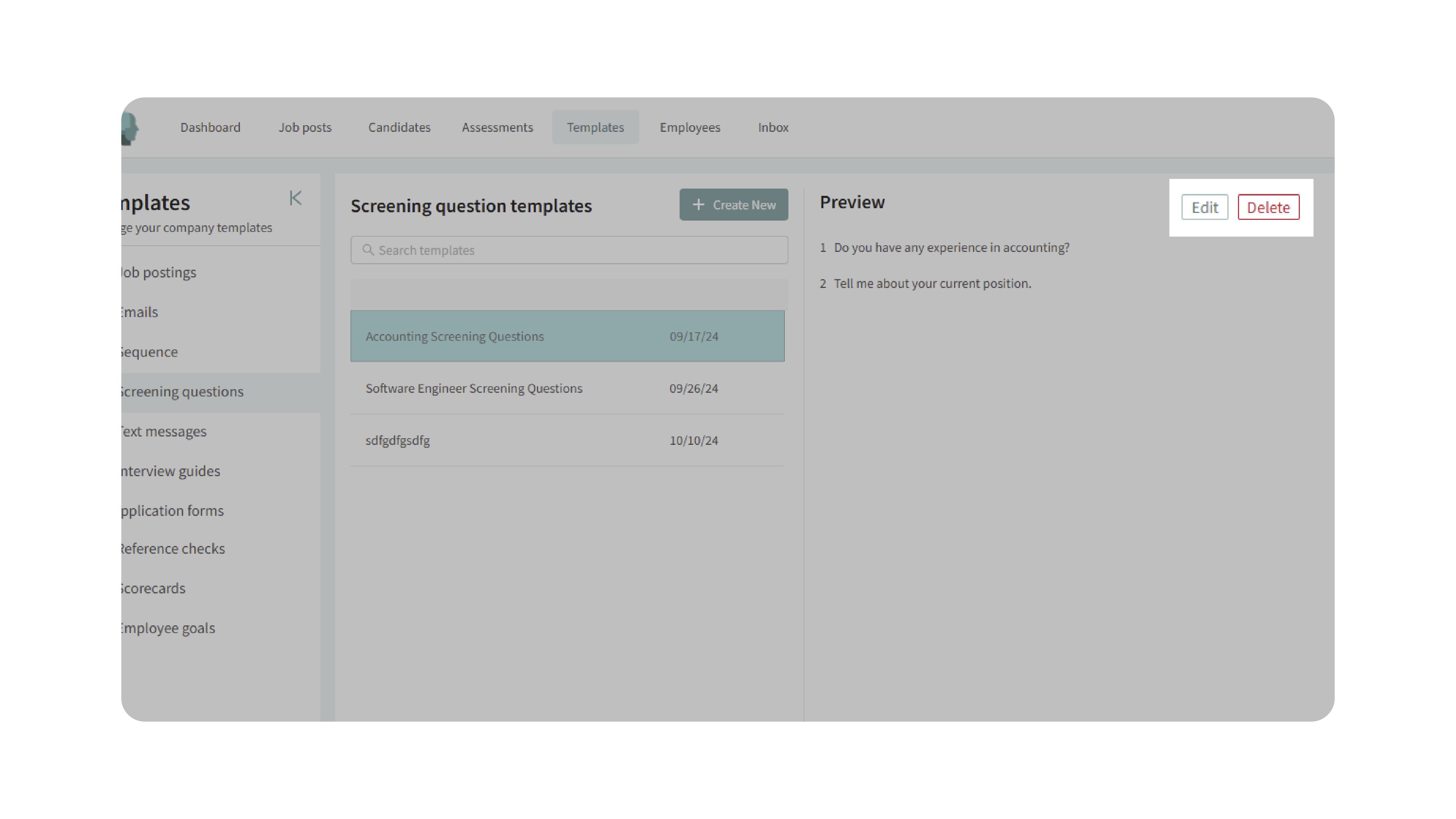 Editing or deleting templates allows you to keep your screening library up-to-date with evolving job requirements.