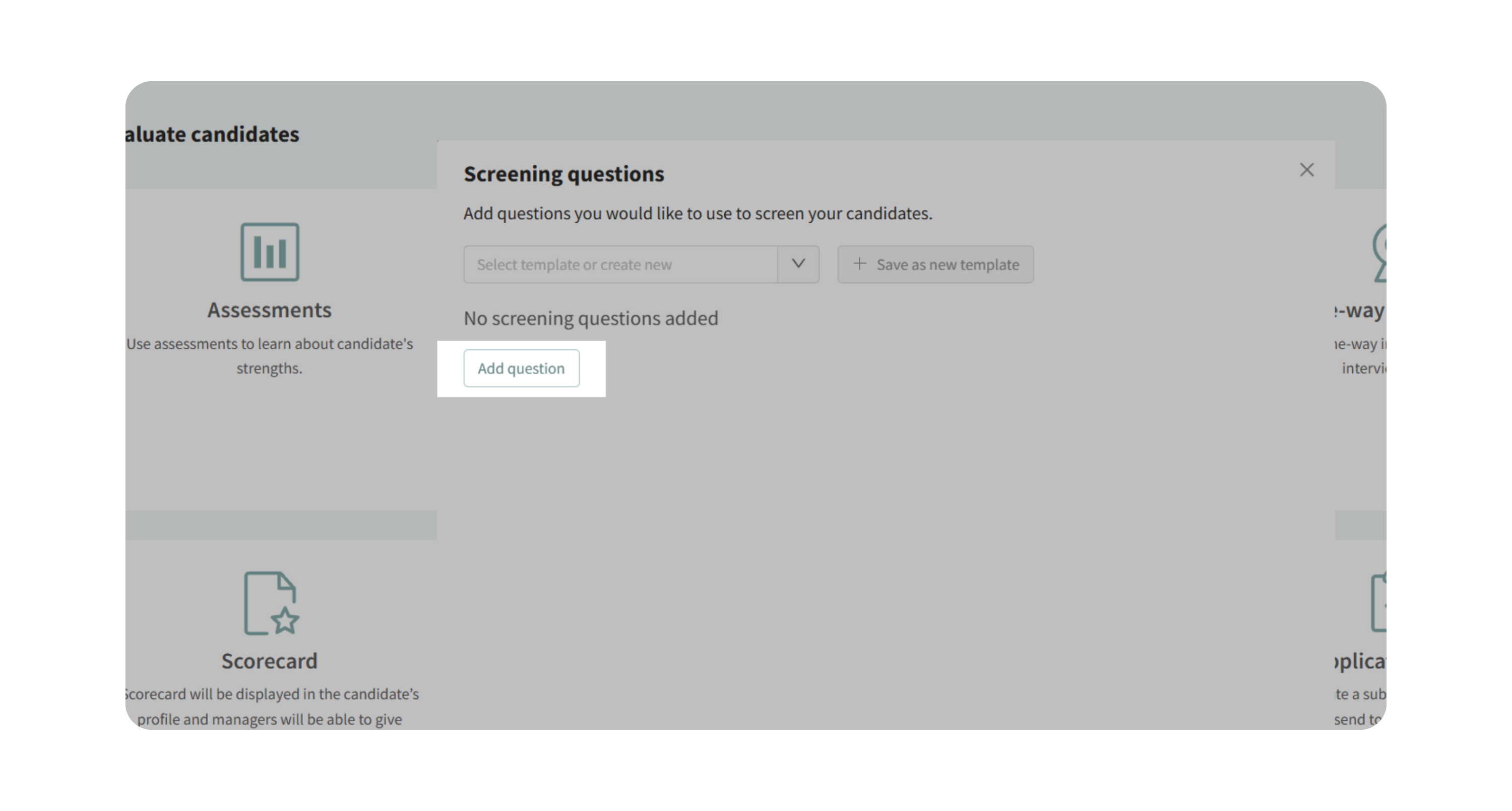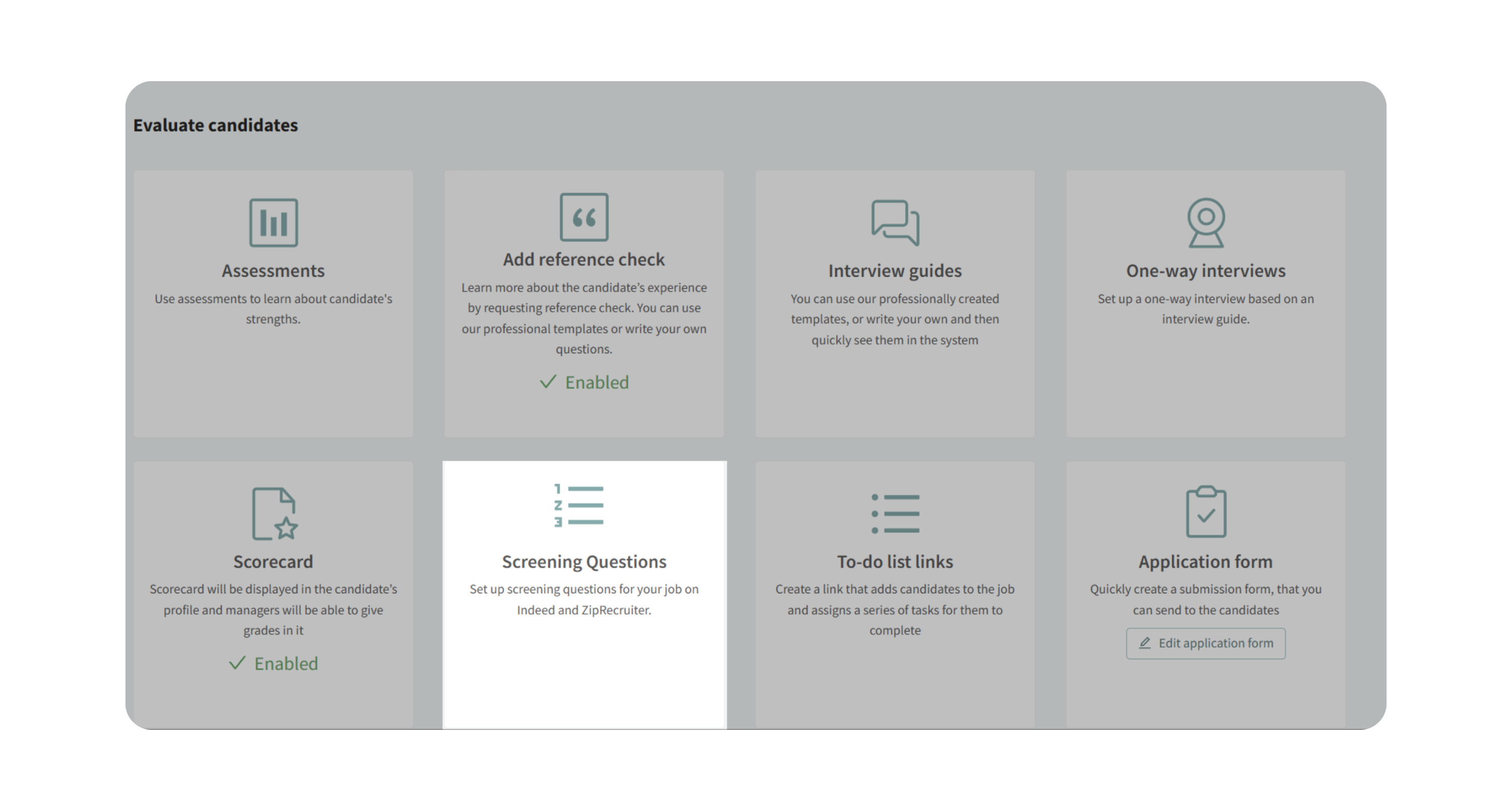- Scroll to Evaluate Candidates and click Screening Questions.