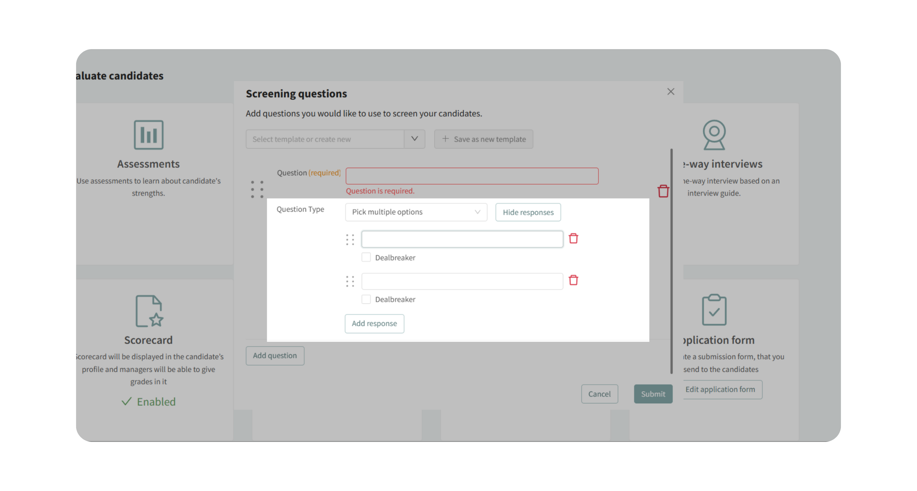 3. Add Responses & Deal Breakers (for Multiple Choice)