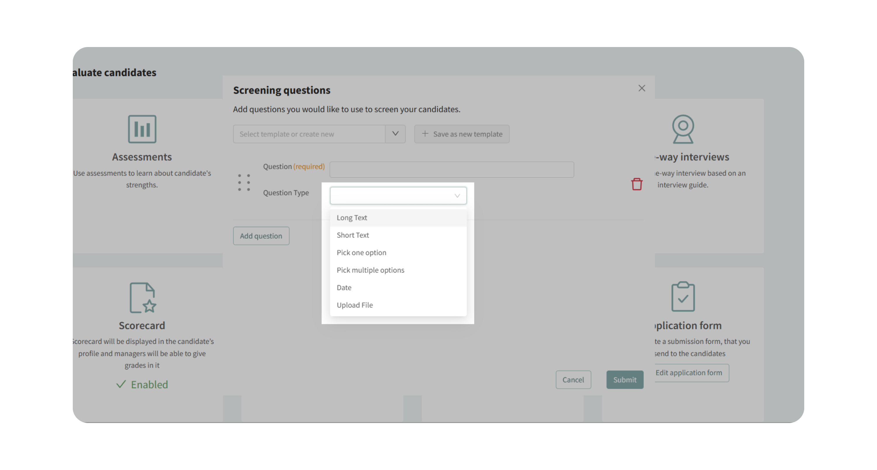 Filter candidates early by requiring them to answer structured questions when applying through job boards.