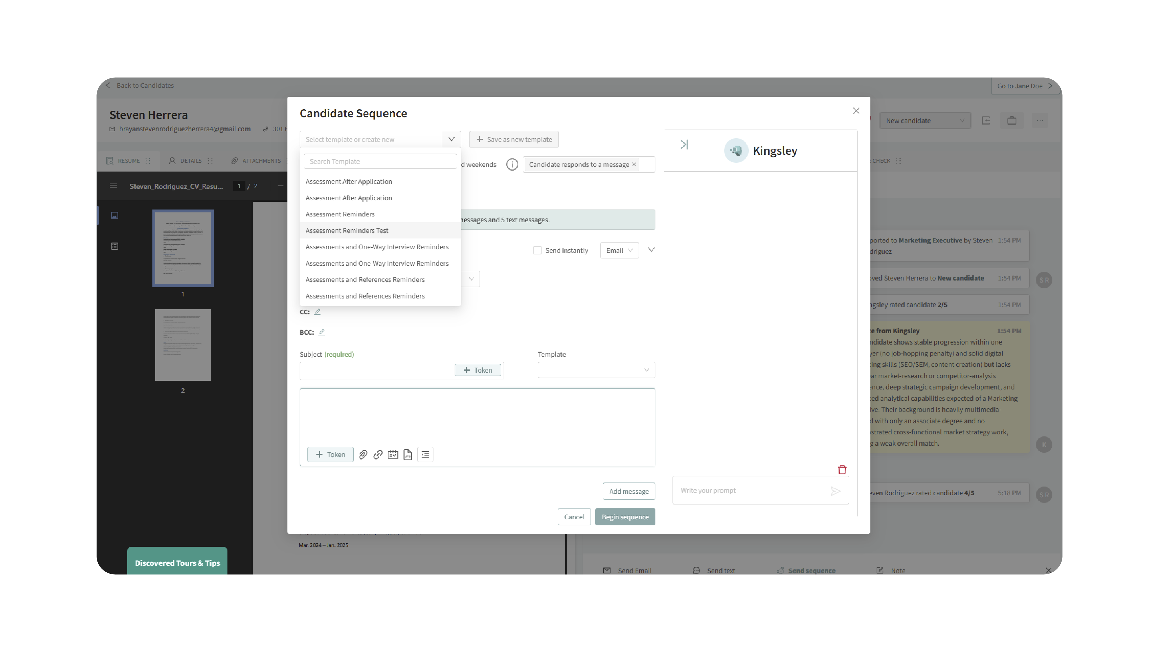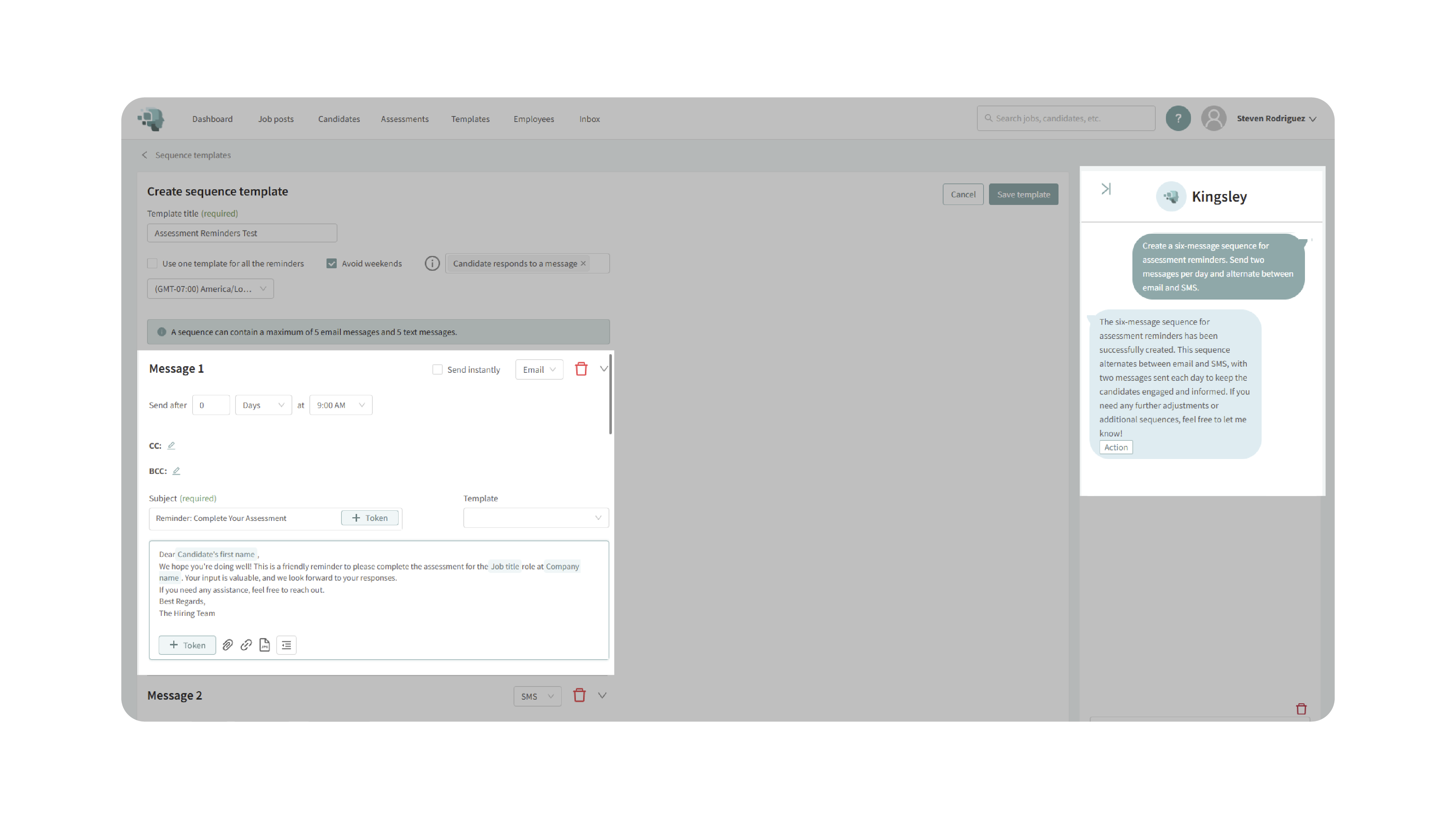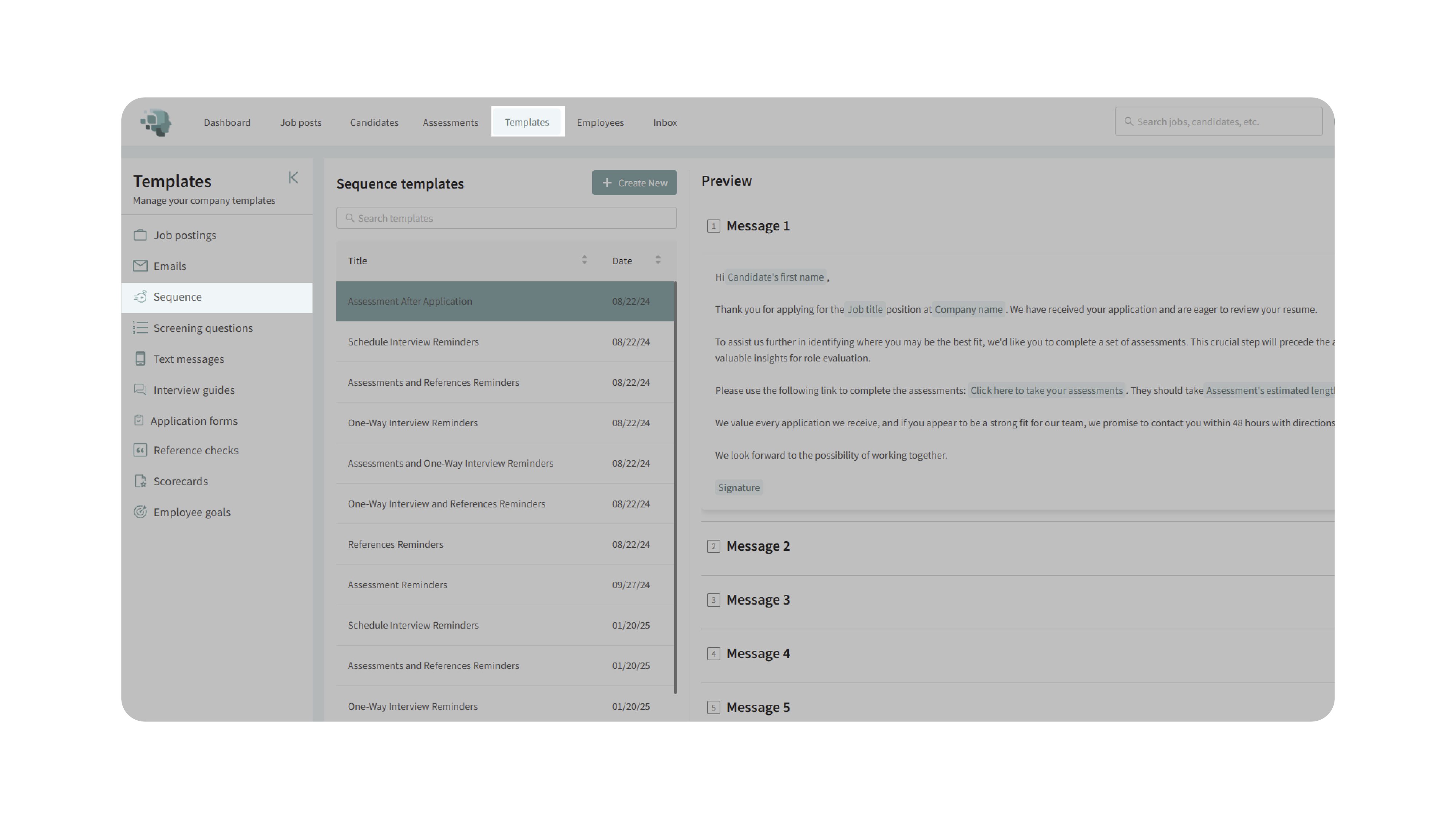 With Sequence Templates, you can automate follow-ups, reminders, and updates — delivering consistent, personalized candidate communication at scale while freeing up your team to focus on higher-impact tasks.