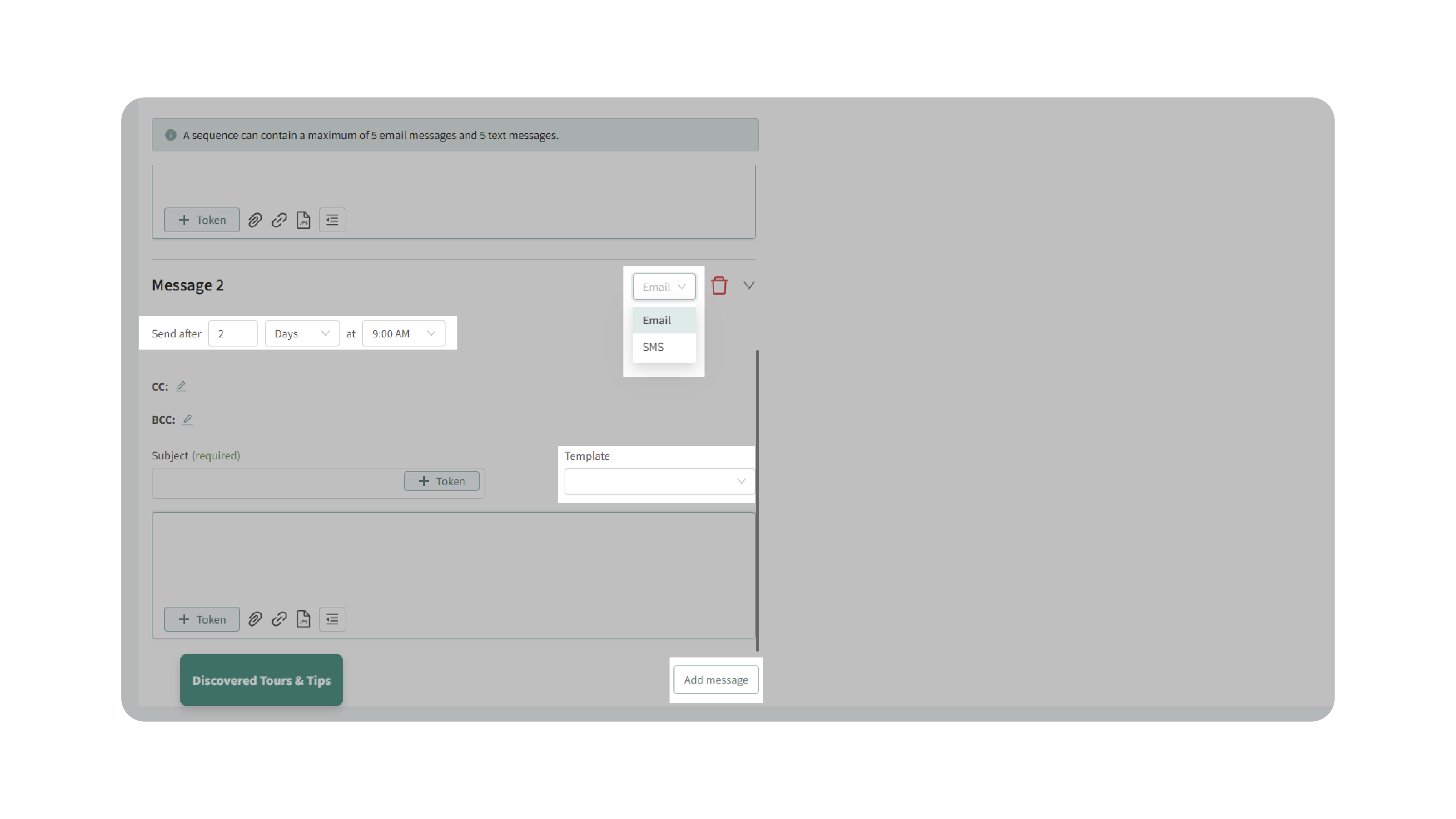 - Select when the message should be sent (e.g., immediately, after 1 day, after 2 hours).