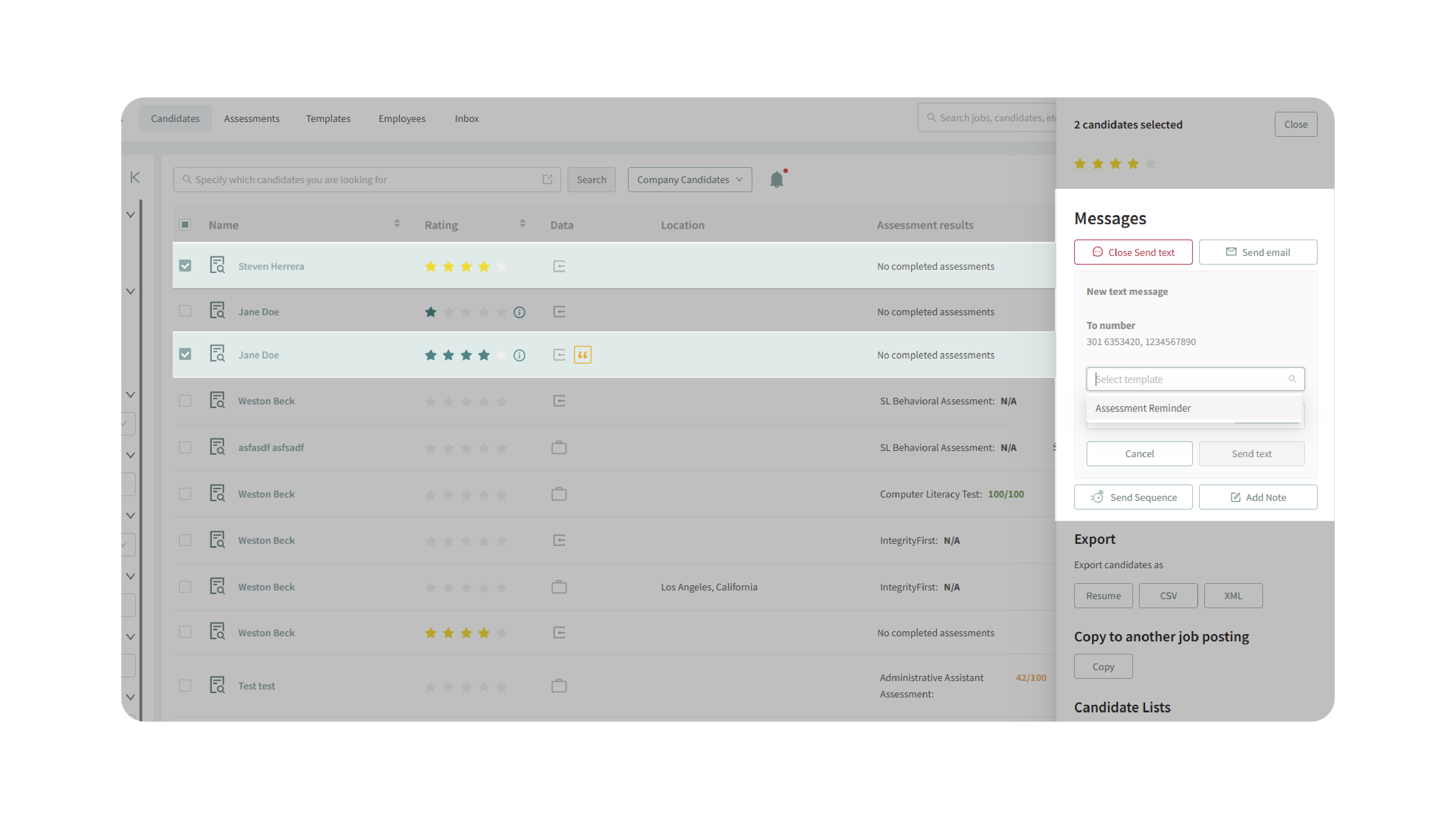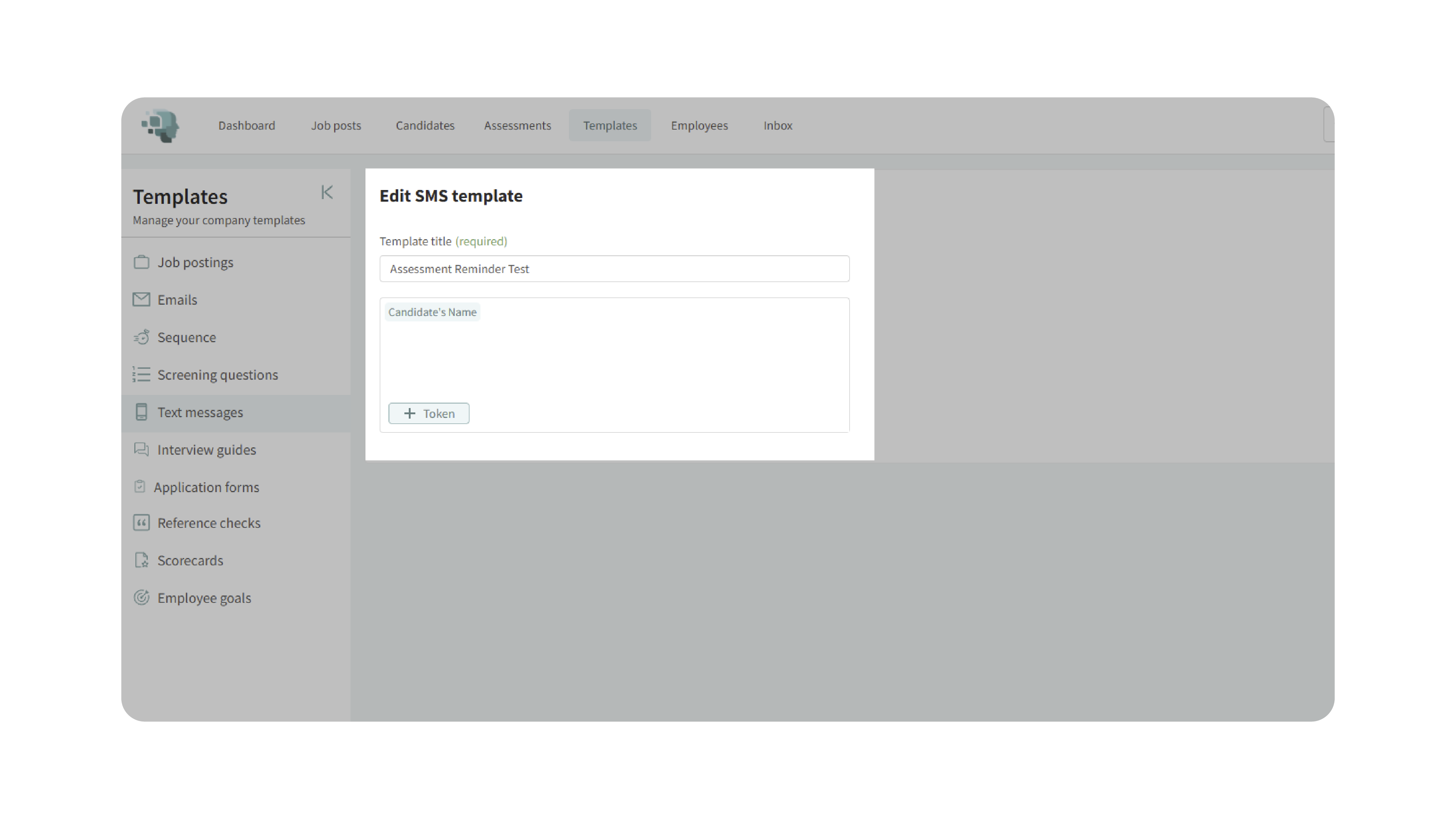 By using tokens (such as a candidate’s first name or an assessment link), each message can be personalized automatically—ensuring efficiency while keeping your communication human and relevant.
