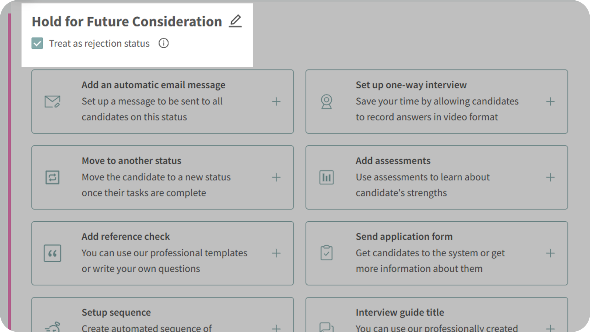 - Recruiters: Mark “Hold for Future Consideration” as a rejection to keep pipelines clean while preserving future outreach options.