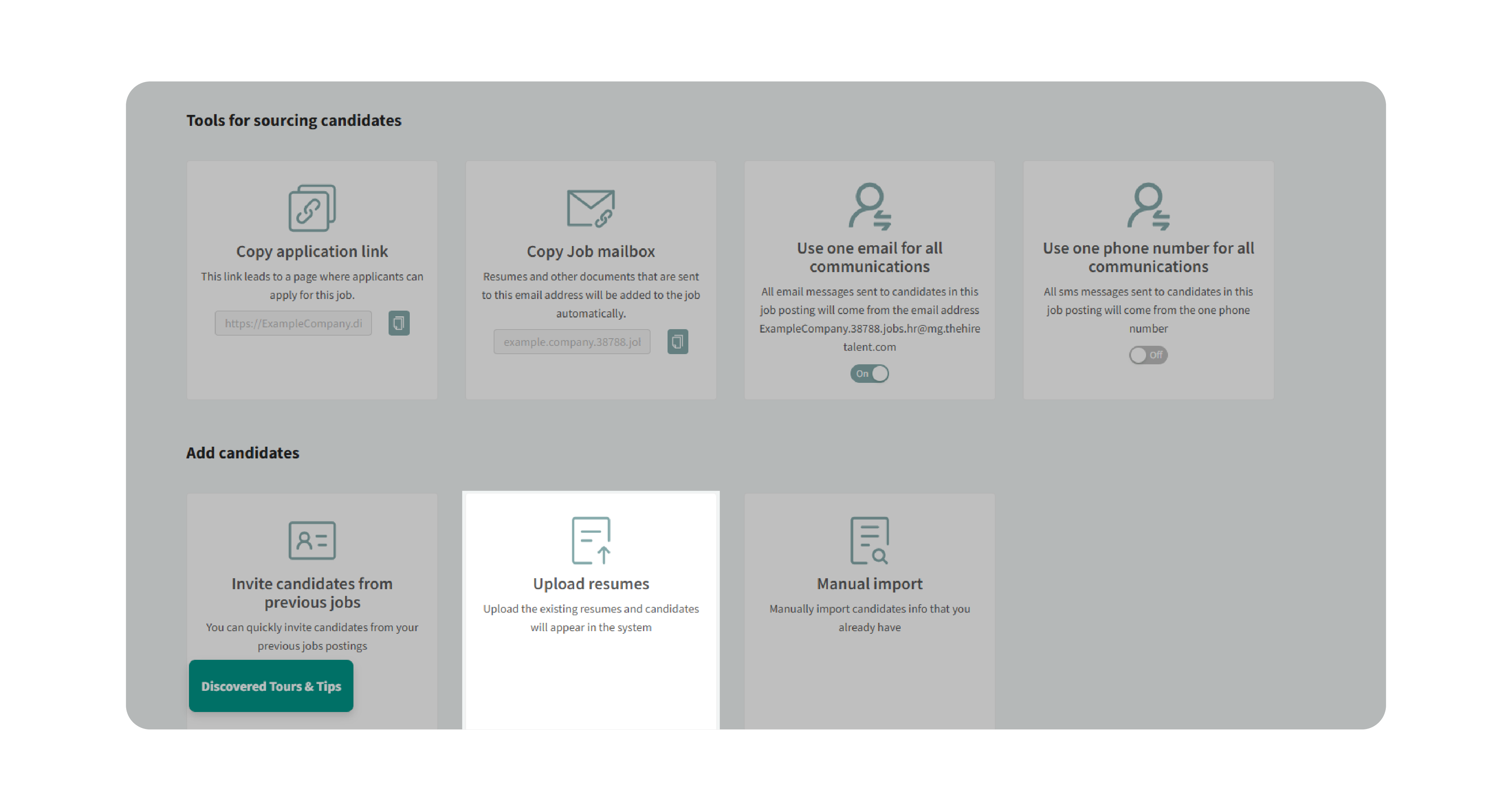 - Use uploading as a way to consolidate external applicants into your hiring funnel.