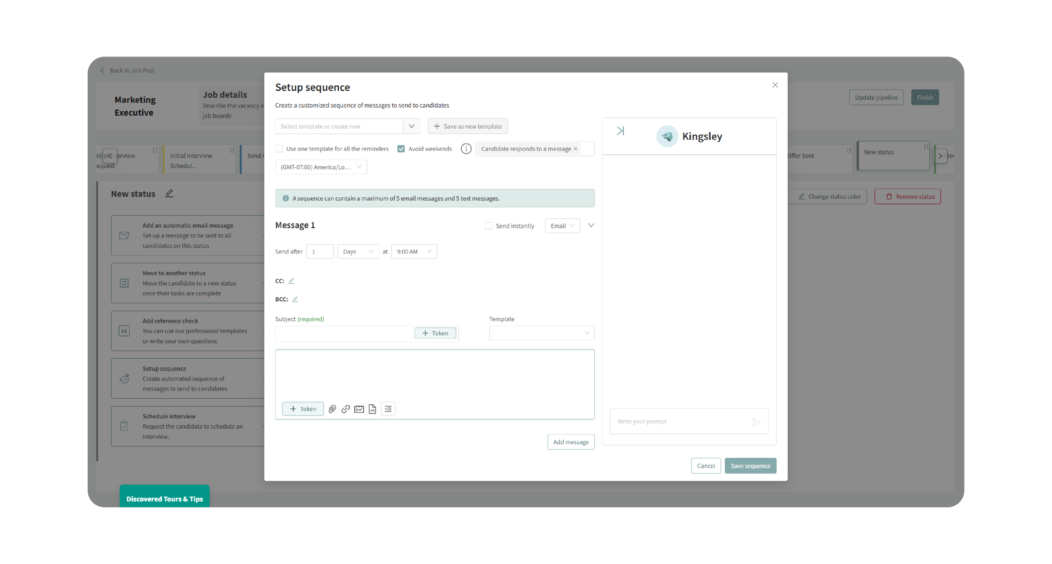- Use templates or Kingsley automation to build sequences quickly and maintain consistency.