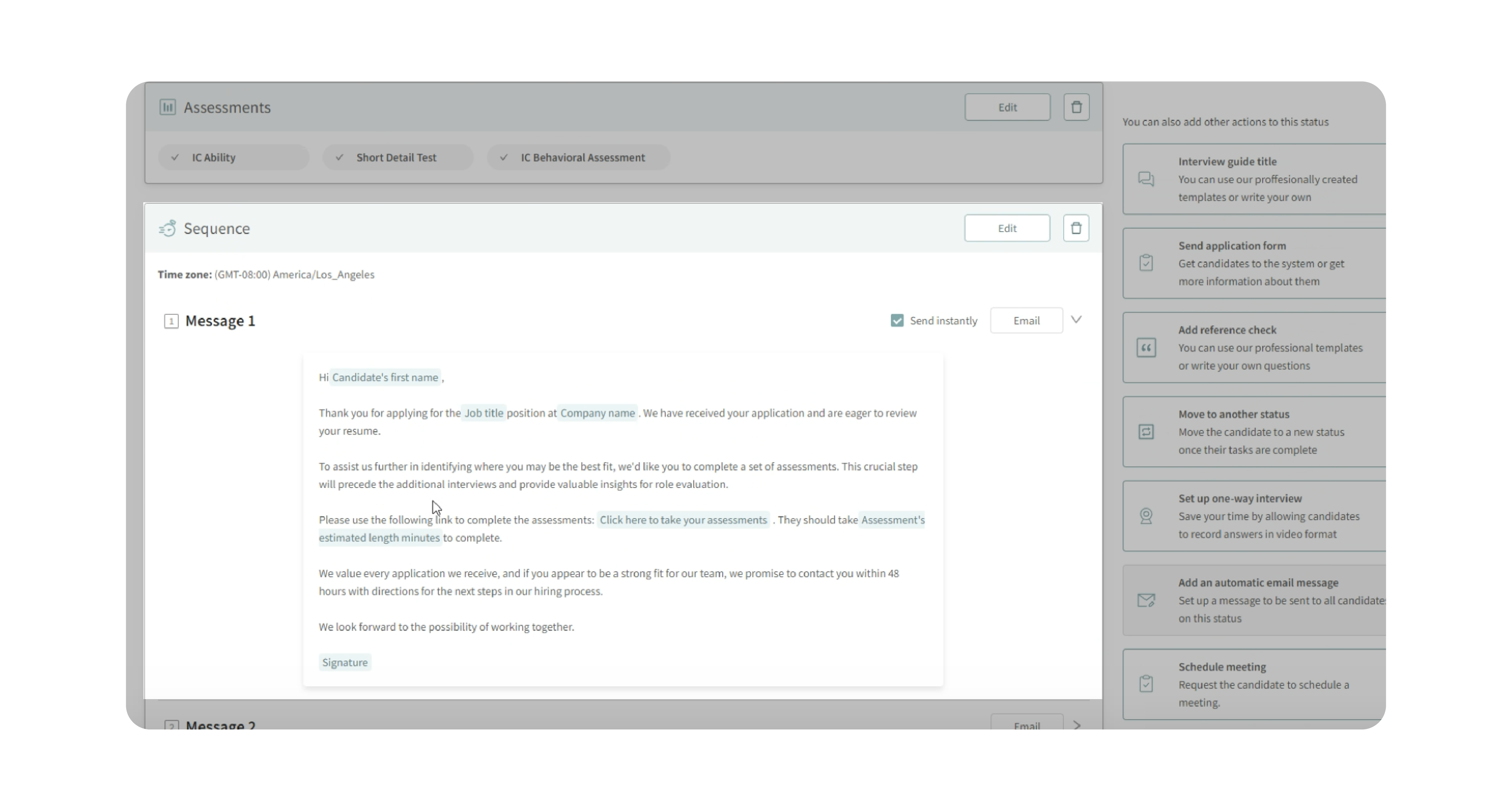 With Candidate Sequences, you no longer have to manually chase applicants. Instead, you can rely on automated workflows to keep your pipeline moving smoothly.