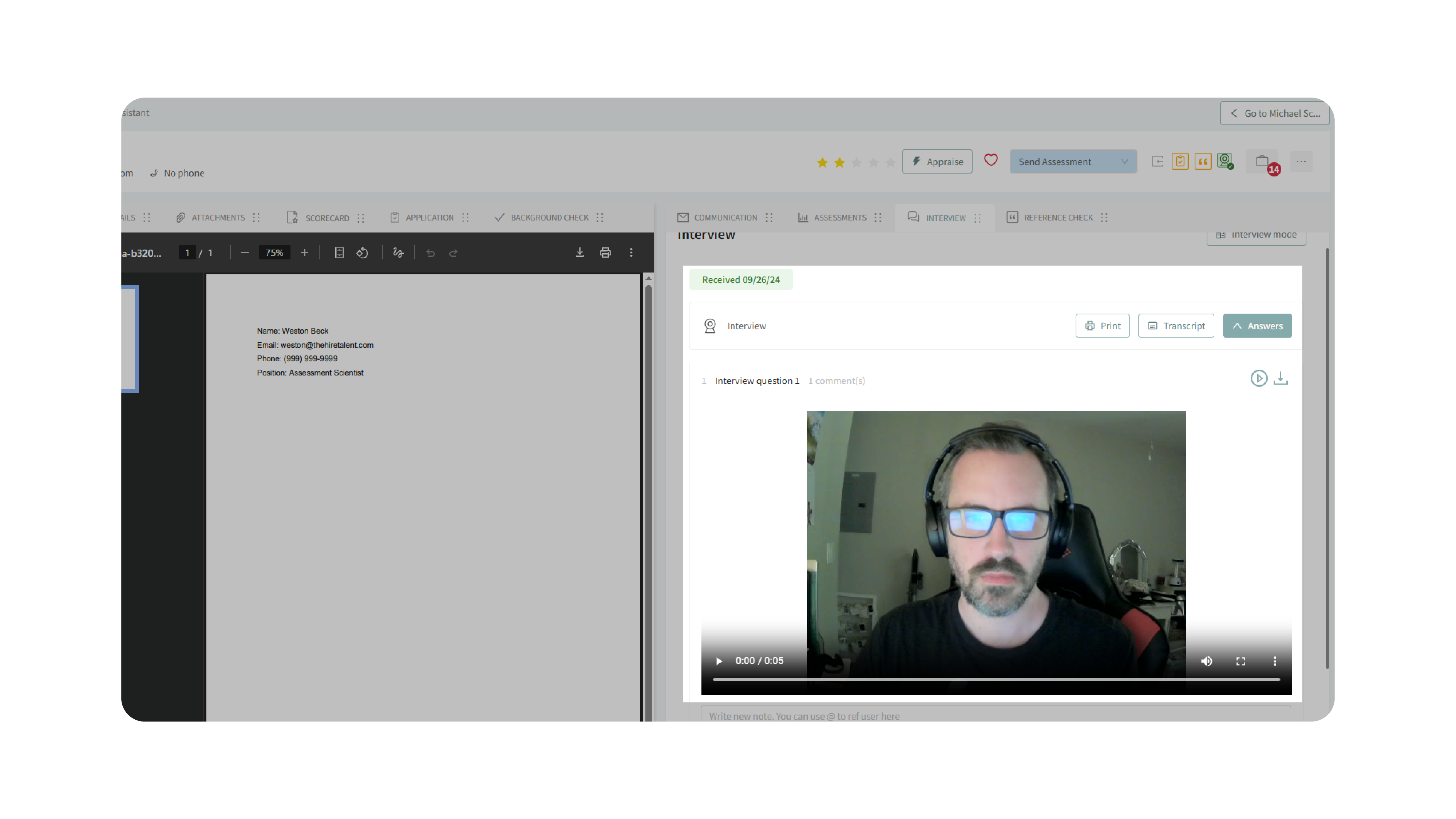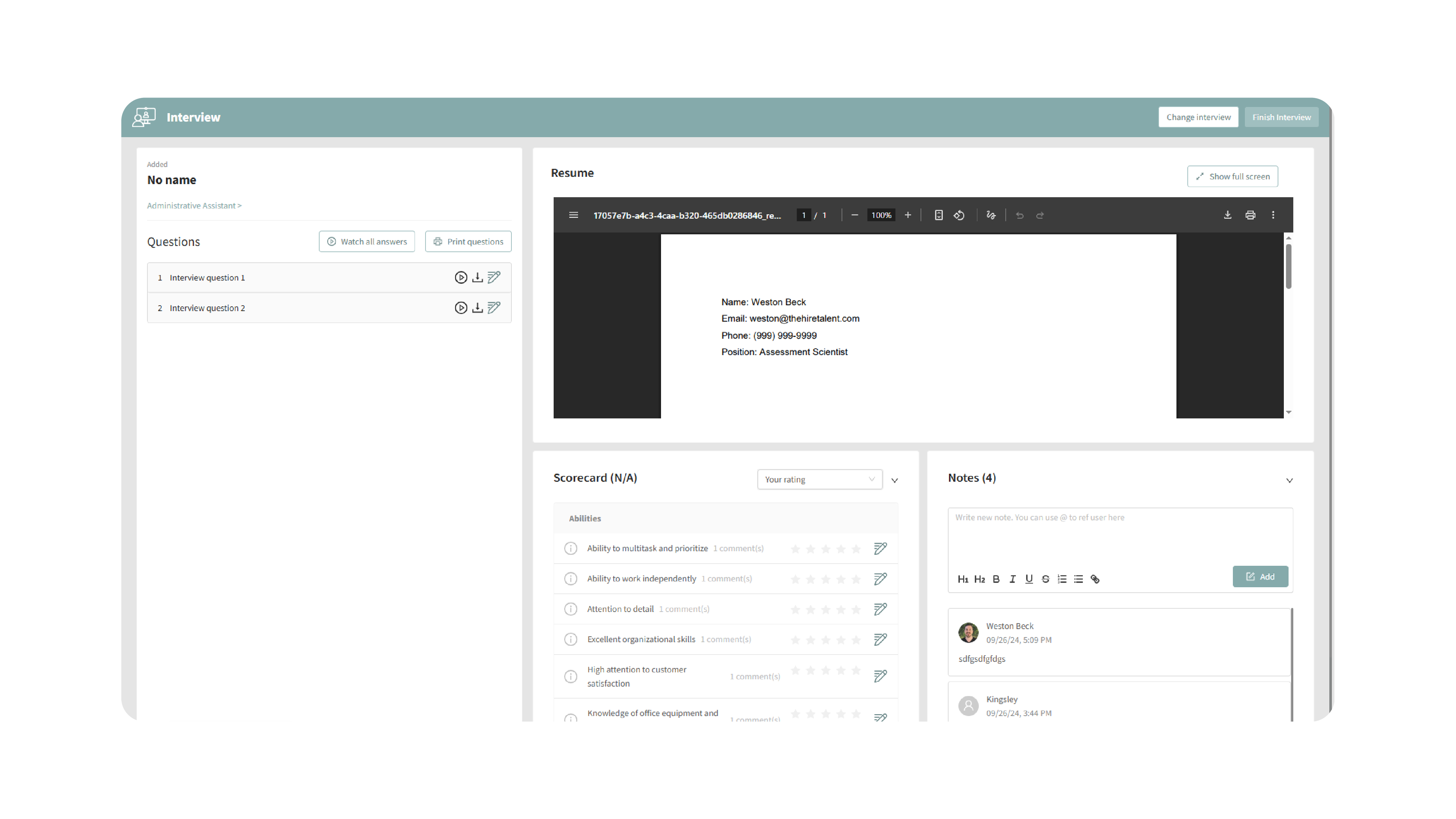 - Interview Mode enables you to finalize ratings and notes directly during the session.