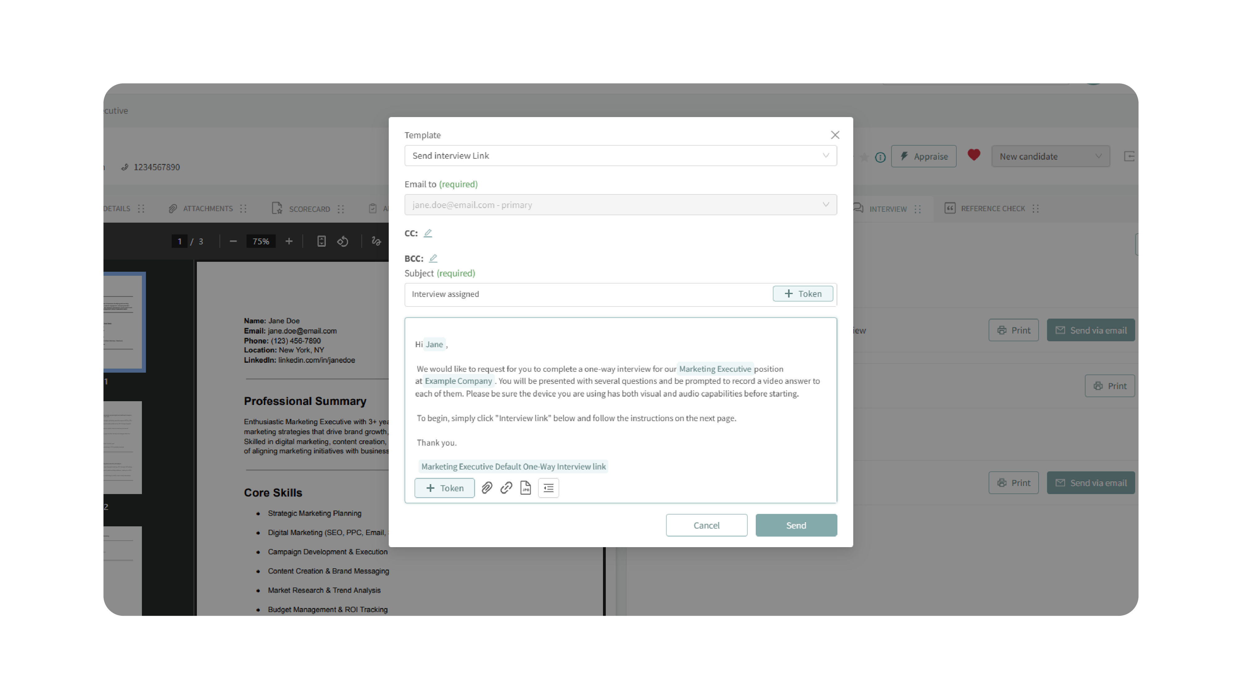 - Ensure the interview link token is included so the candidate can access the interview.