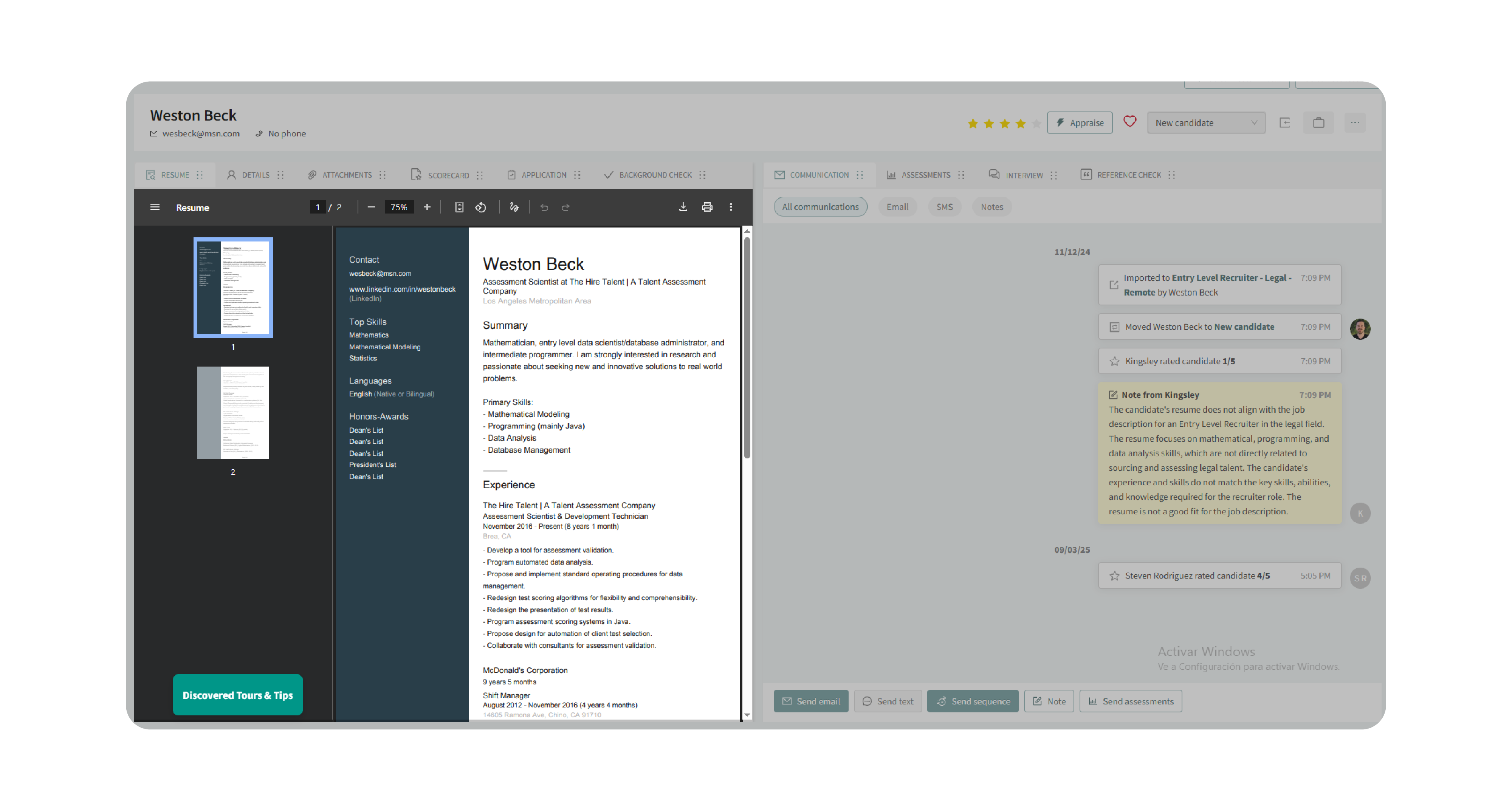 Resumes are the foundation of candidate evaluation. With the Resume Tab: